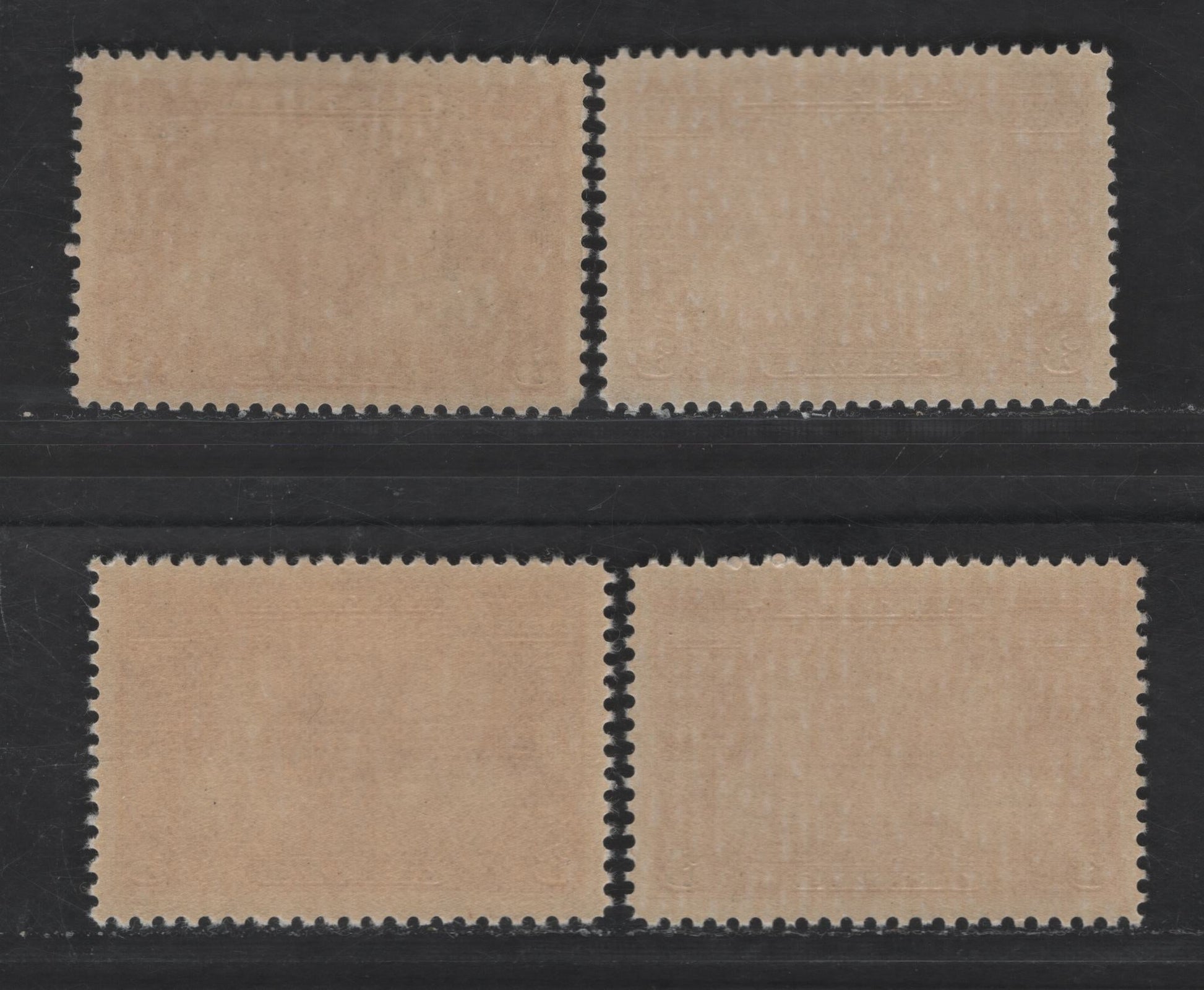 4 VFNH singles of the 3c carmine, carmine red & deep carmine red King George V & Queen Mary from the 1935 Silver Jubilee Issue different paper & gum types - see description for details. Includes: (1) carmine on white paper, yellowish cream semi-gloss gum; (2) as (1) but slightly cream semi-gloss gum; (3) carmine-red on white paper, clear vertical mesh, cream semi-gloss gum; and (4) deep carmine red, cream paper, with streaky cream gum.