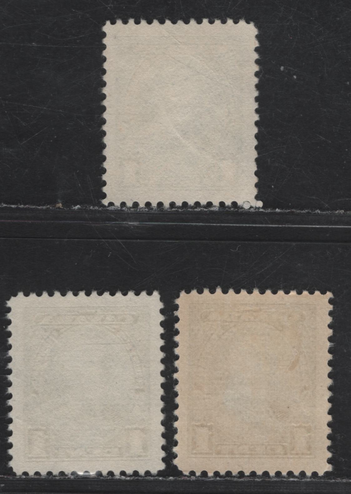 Canada #217var 1c Deep Bright Green & Deep Green King George V, 1935-1937 Dated Die Issue, 3 VF Used Singles Soft Vertical Wove Paper