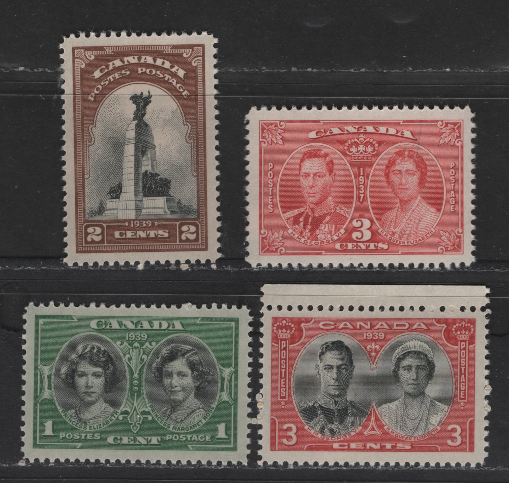 Canada #237, 241-243 1c-3c Carmine Red - Carmine & Black King George VI & Queen Elizabeth, War Memorial & Princesses Margaret & Elizabeth, 1937-1939 Coronation & Royal Visit Issues, 4 VFNH Singles