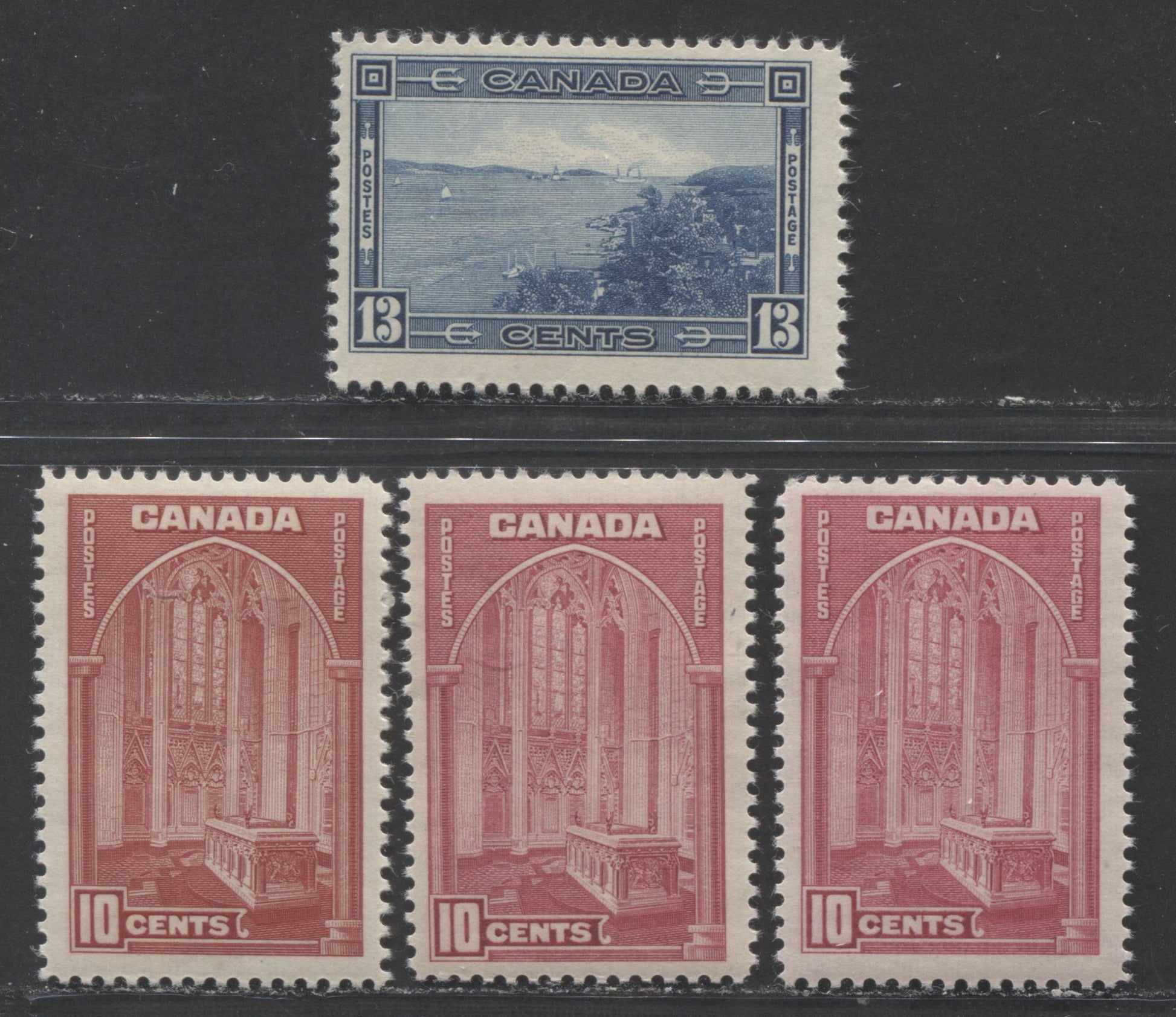 Canada #241-242 10c-13c Dark Carmine - Deep Blue, 1938 Pictorial Issue, 4 FNH Singles With Different Papers & Gums