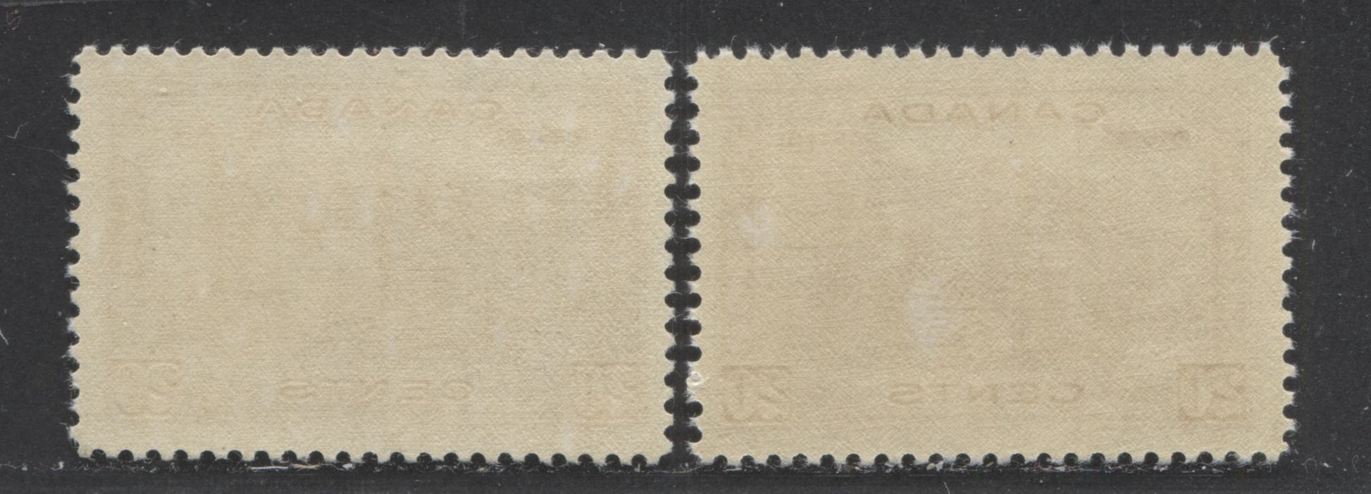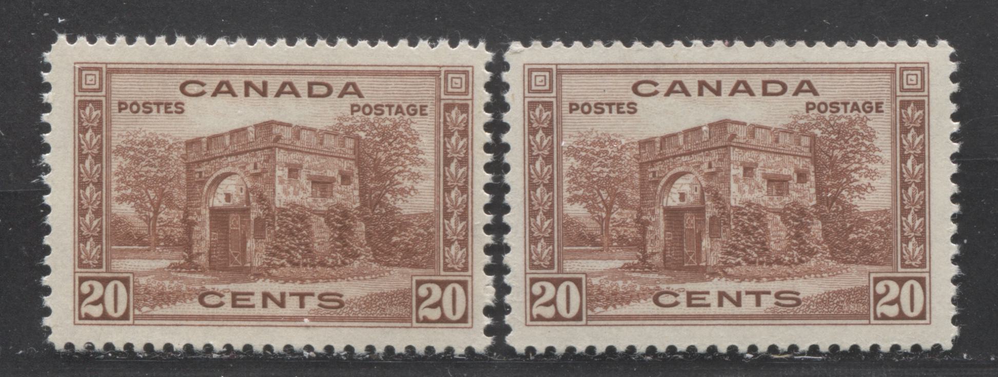 Lot 16 Canada #243 20c Pale Red Brown & Pale Brown Red, 1938 Pictorial Issue, 2 FNH Singles On Vertical Wove(Mesh) Papers With Crackly Cream Gum