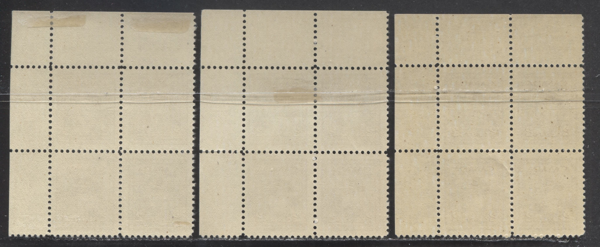 Lot 370 Canada #250 2c Brown, 1942-1943 War Issue, 3 VFOG UR Plate 2 Blocks Of 4 Printed In Various Shades, Papers & Gums