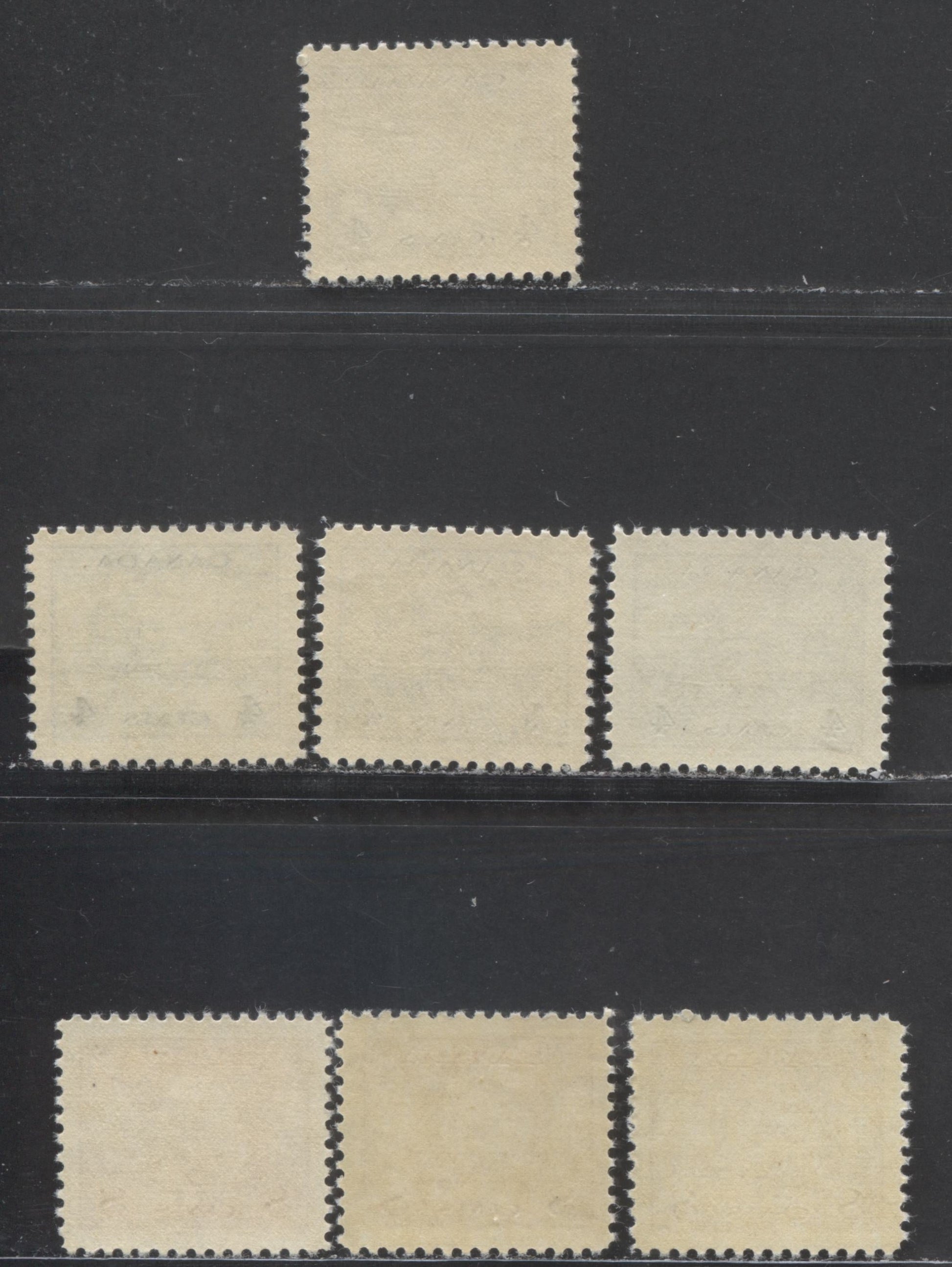 Lot 24 Canada #253, 256 4c & 8c Greenish Black & Red Brown, 1942-1943 War Issue, 7 VFNH Singles With Different Papers, Gums & Shades