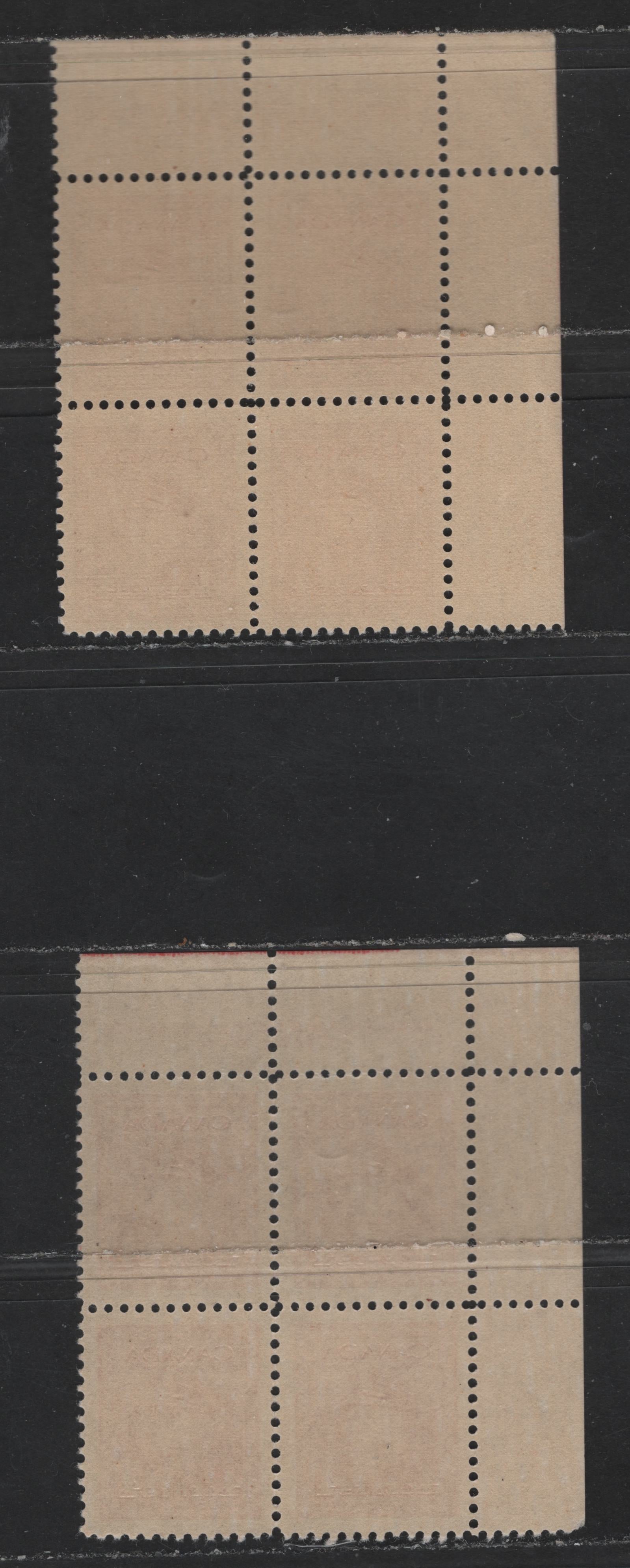 Canada #254 4c Carmine Red King George VI, 1942-1949 War Issue, 2 VFNH UL Plate 32 & 47 Blocks On Horizontal Ribbed Paper With Cream Gum