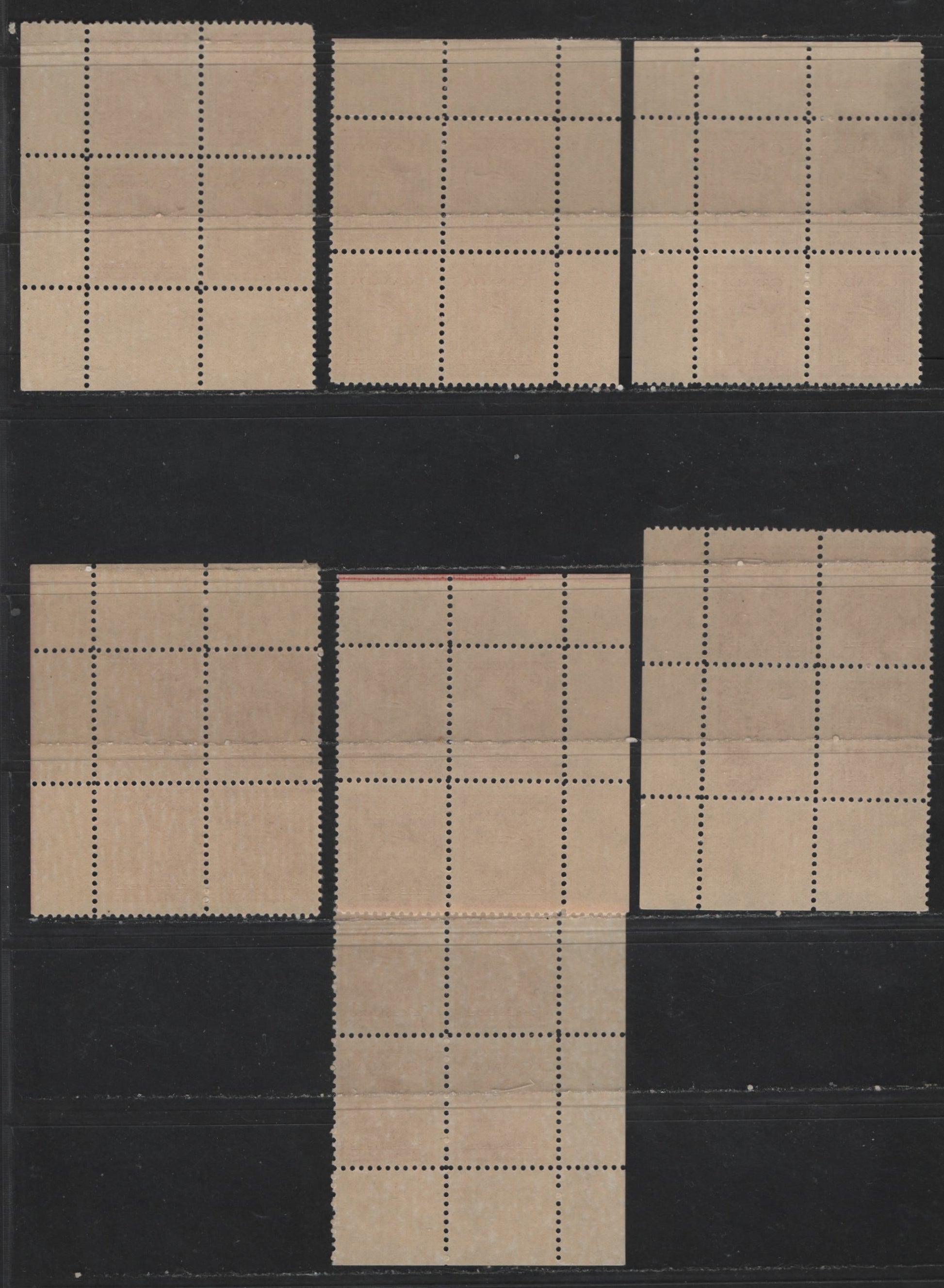 Canada #254 4c Carmine Red King George VI, 1942-1949 War Issue, 7 Fine NH Plate 42 & 47 Blocks On Horizontal Ribbed Paper With Smooth & Streaky Cream Gum