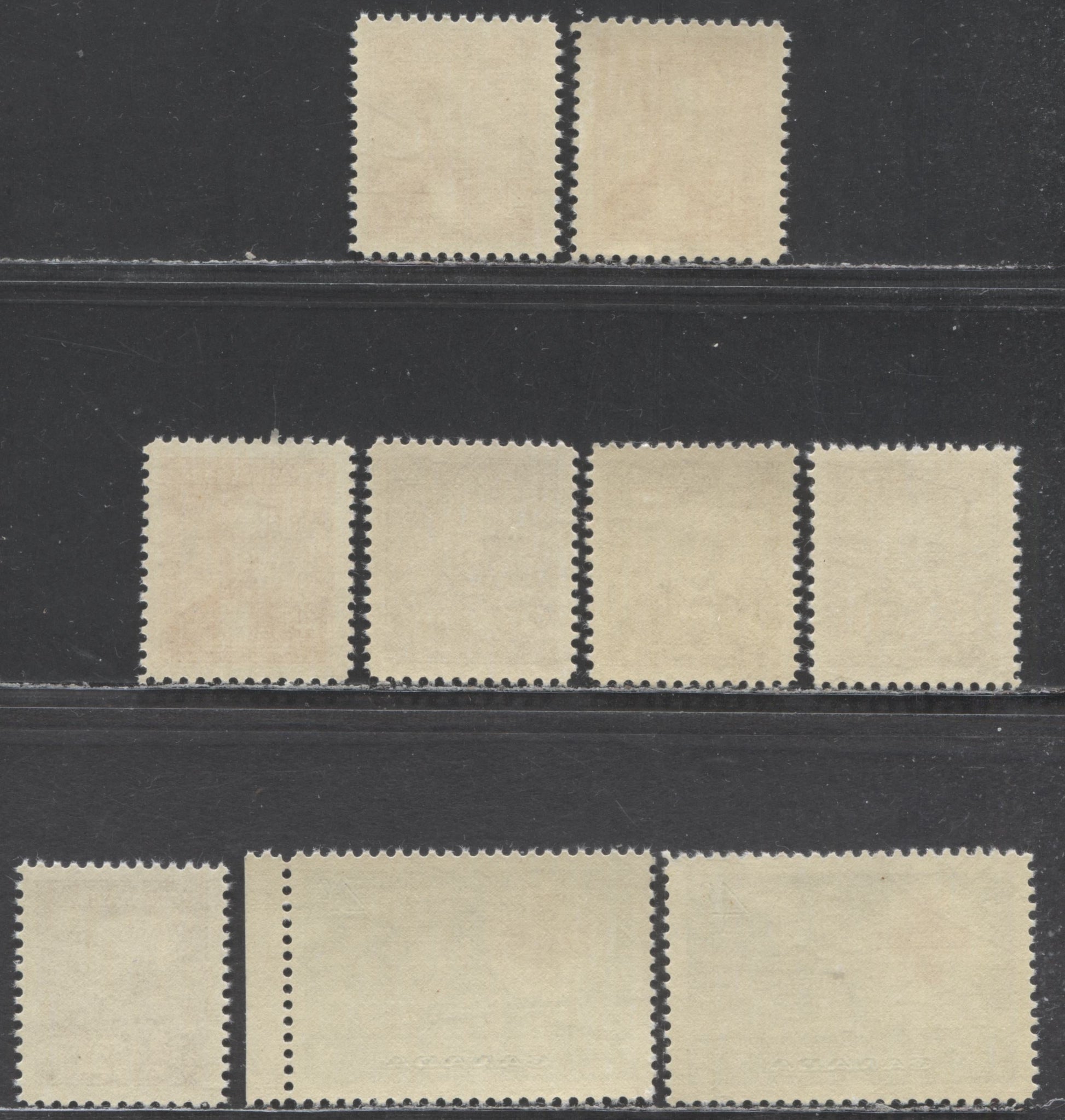9 VFNH singles of the 4c,3c,4c blue & red, rose lilac, orange vermilion Red Cross Symbol, Sir John Abbot, Alexander Mackenzie from the 1952 Red Cross Conference, Prime Ministers Issues different shades. 317 comes in two shades of blue with one lighter than the other. 318 exists in many shades from pale rose lilac to a deeper brownish claret rose. The orange VF 319 varies in brightness