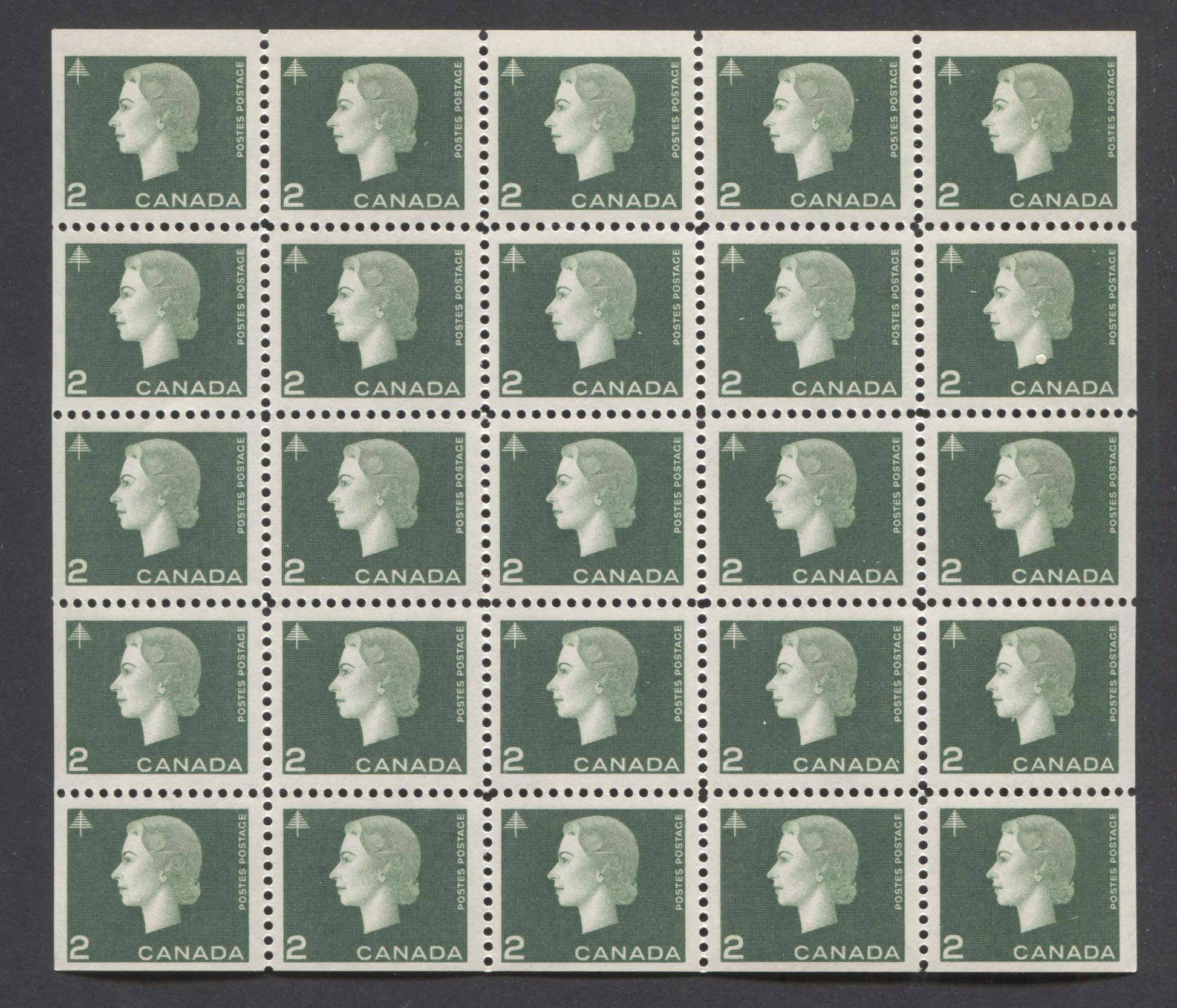 Lot 4 Canada #402ai 2c Green Forestry, 1962-1963 Cameo Issue, A VFNH Pane Of 25