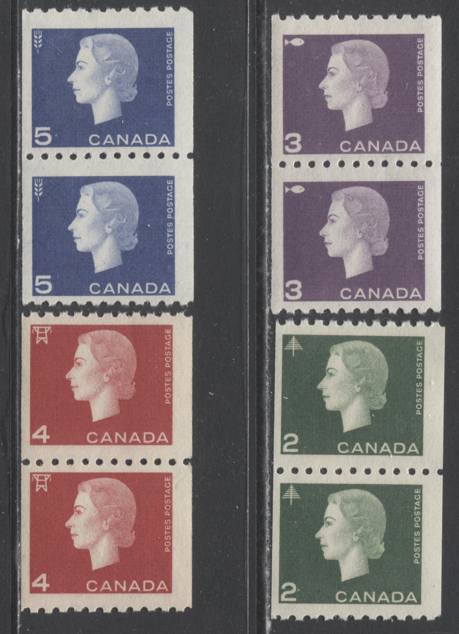 Lot 16 Canada #406-409 2c-5c Green-Violet Blue Forestry-Agriculture, 1962-1963 Cameo Coil Issue, 4 FNH Coil Pairs