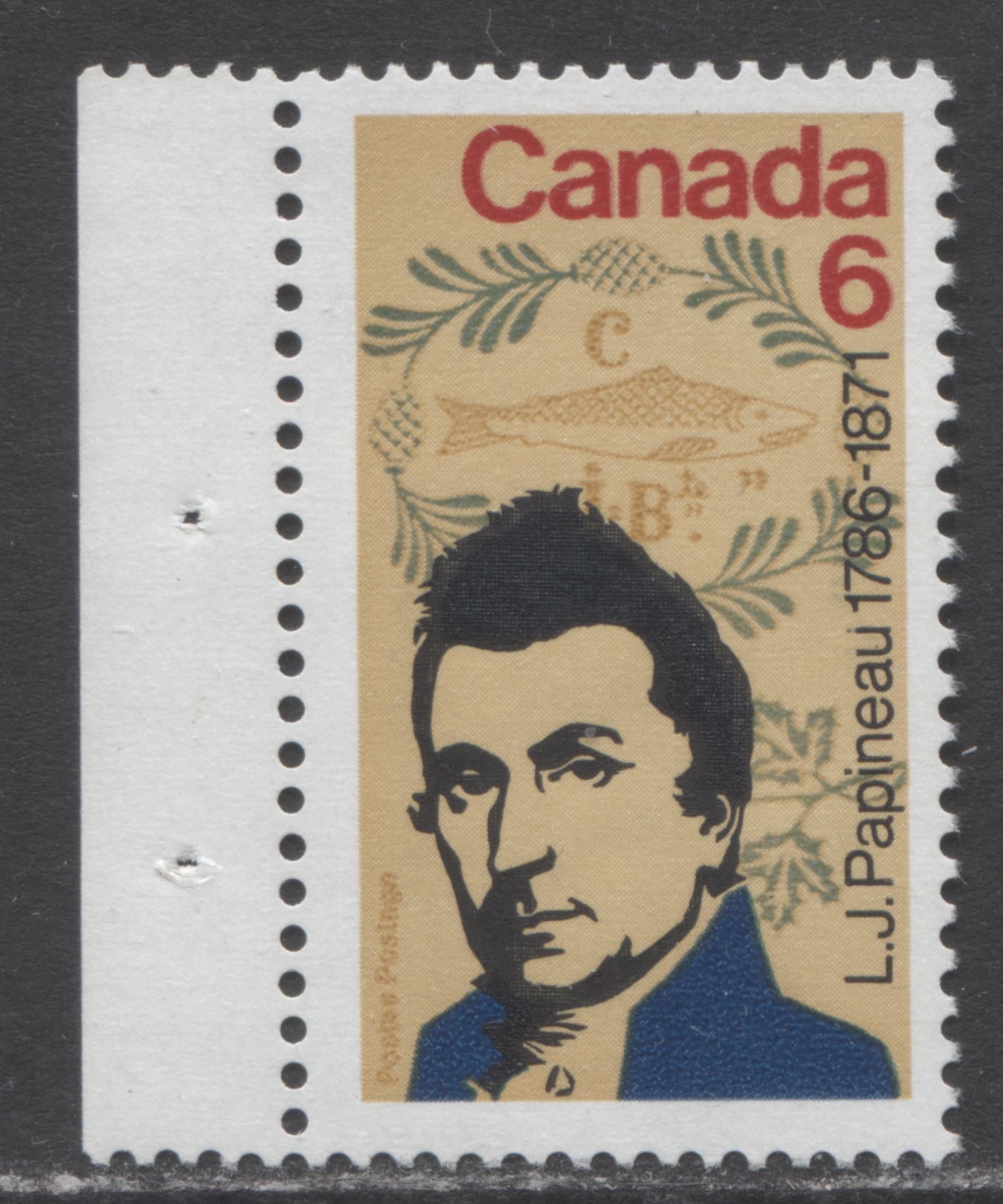 Canada #539 var 6c Multicoloured L.J. Papineau, 1971 L.J. Papineau Issue, A FNH Single With Weak Kiss Print Doubling Of Canada & 6 On DF/DF Paper With Matte PVA