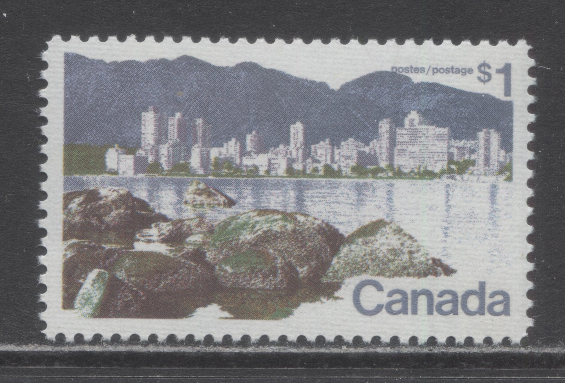Canada #600i $1 Multicoloured Vancouver, 1972-1979 Landscape Definitive Issue, A VFNH Single Perf. 11, MF6/F Horizontal Ribbed Paper