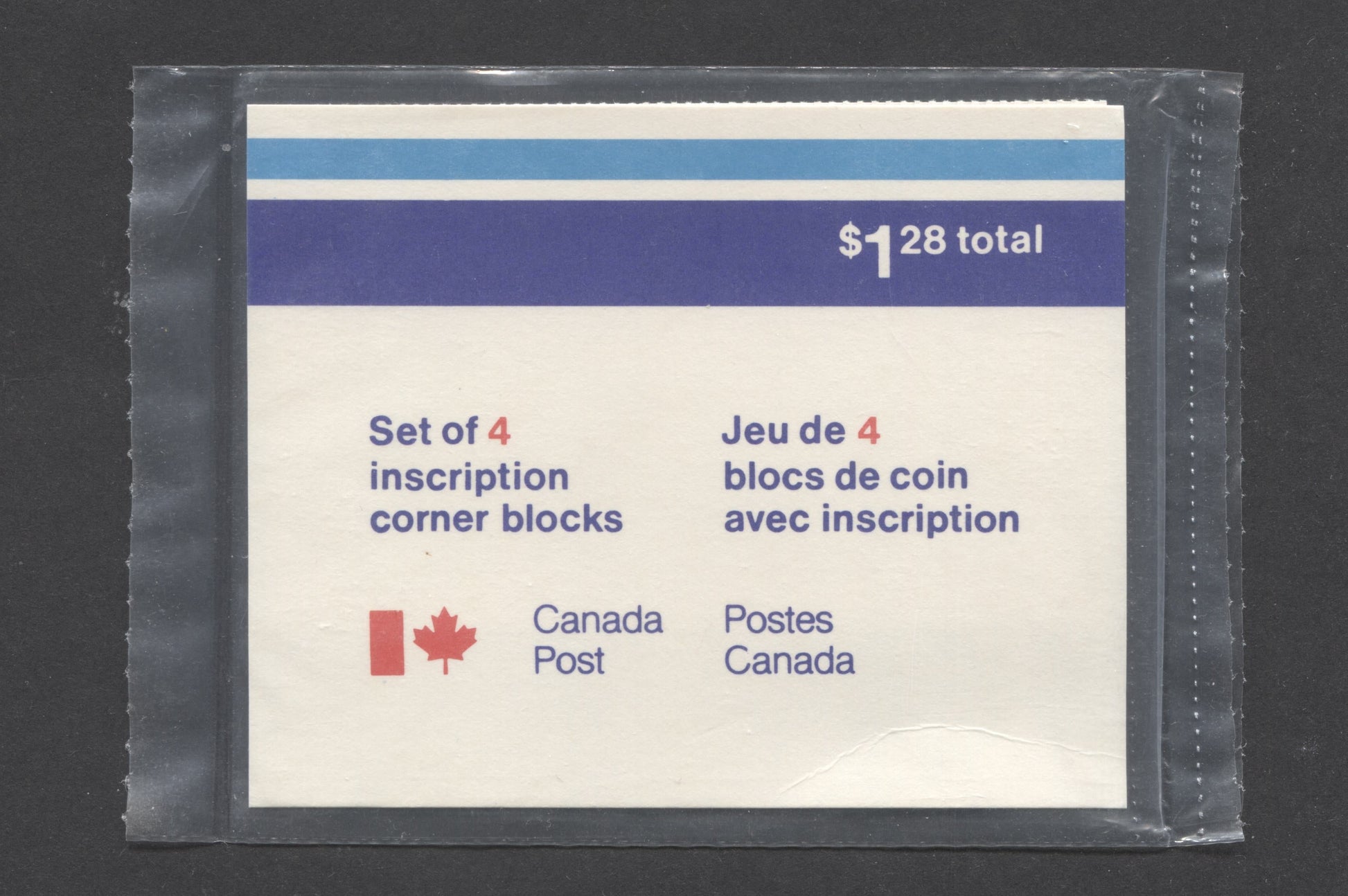 The sealed packages of plate blocks and single stamps first made their appearance on the Canadian philatelic Scene in 1973, as best I can determine. They are an exciting and emerging new field within Canadian philately, as Canada Post went through no fewer than 6 basic design changes for their inser cards, and several of these exist with two or three sub-types. Whenever a change was made it often happens that a particular definitive or commemorative issue may have been issued with more than one type of pack design. We have seen as many as three for one issue. Also, the fluorescence of the card stock used for the cards varies widely from DF to HB, and in some cases when the Philatelic Department ran out of a particular size card, a certain size sealing bag or the blocks themselves, improvisations were made to allow production to continue, and all of these varieties are collectible. The best part is that no one knows the relative scarcities, so you can pick up scarce varieties for less than you would otherwise pay. These packs are the subject of this week's blog post. In it, you will find a full explanation of the terminology that we have used in the lot descriptions, such as the pack types and so forth.