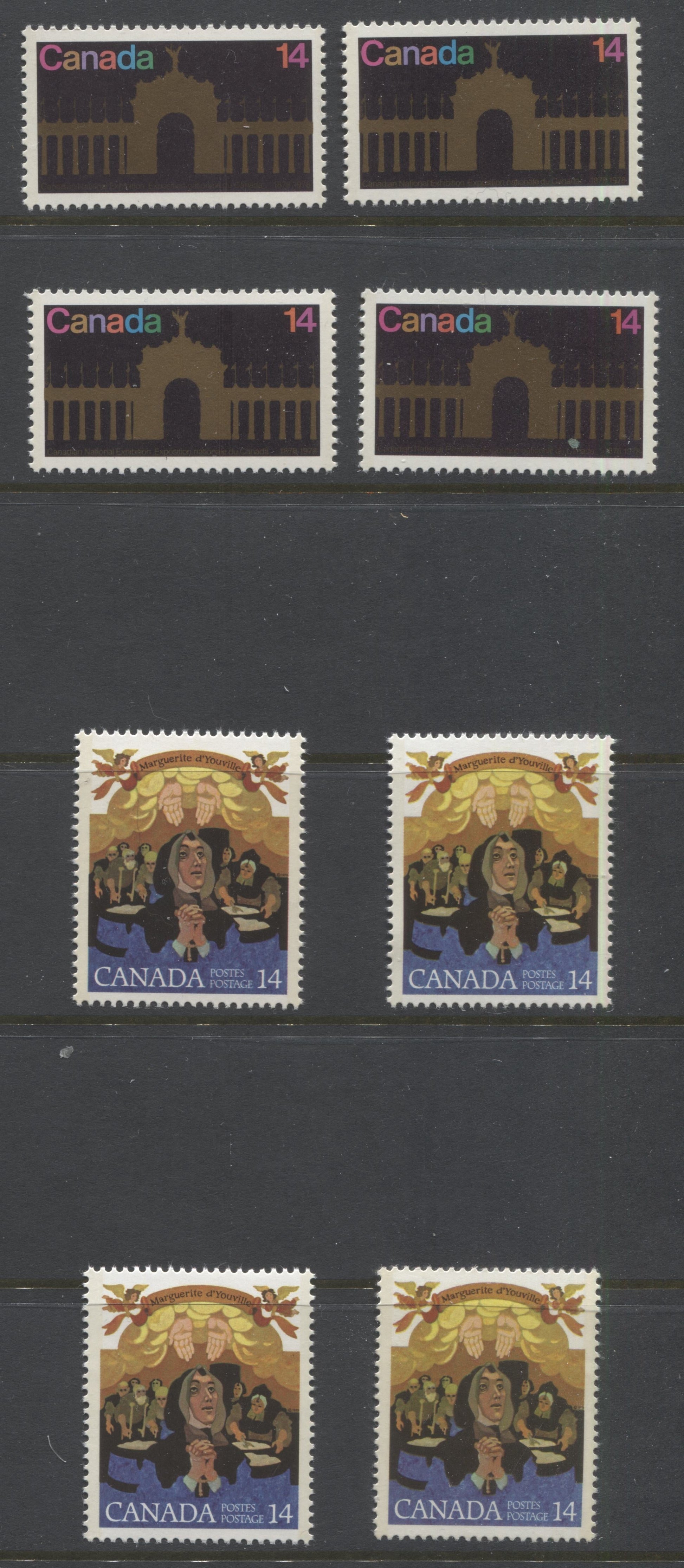 Canada #767-768 14c Multicoloured, 1978 CNE Exhibition and Mere d’Youville Issue, A Specialized Group of VFNH Mint Singles On DF/NF, NF/NF, DF/DF and DF/LF Papers