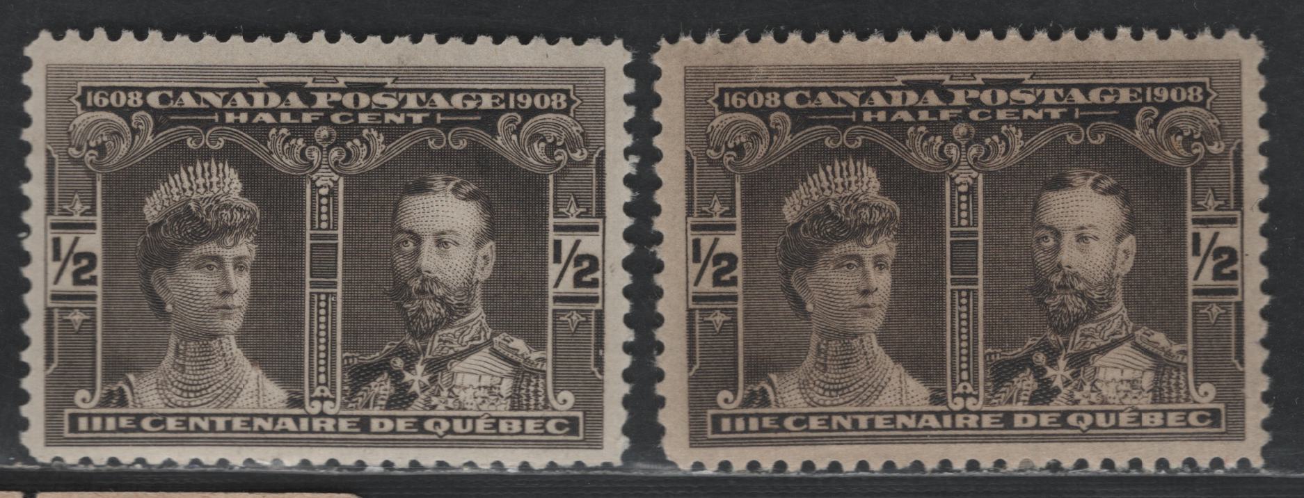 Canada #96 1/2c Black Brown & Brown Black Prince & Princess Of Wales, 1908 Quebec Tercentenary Issue, 2 VFOG Singles