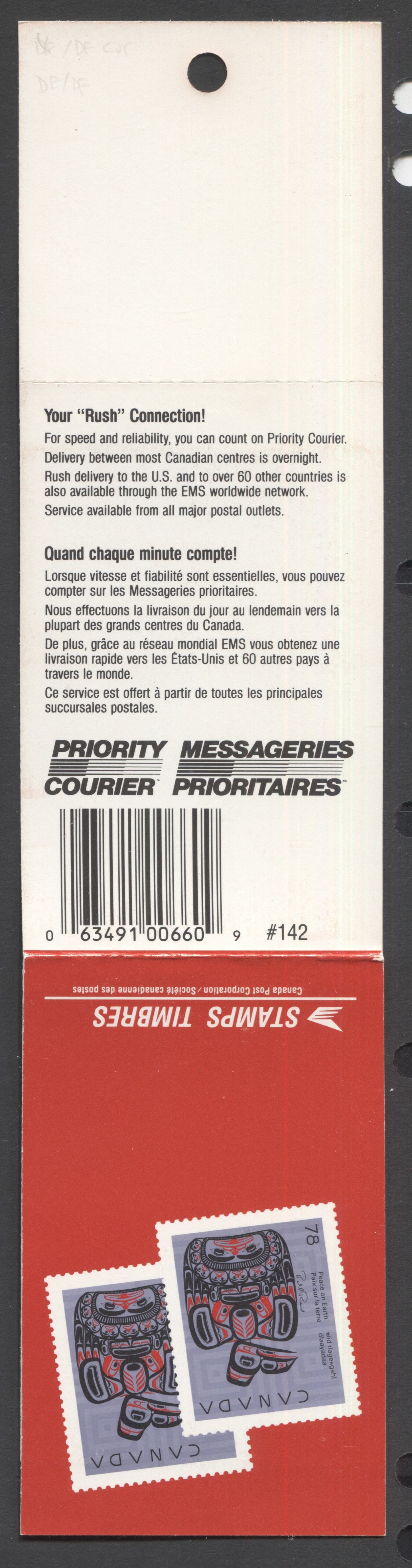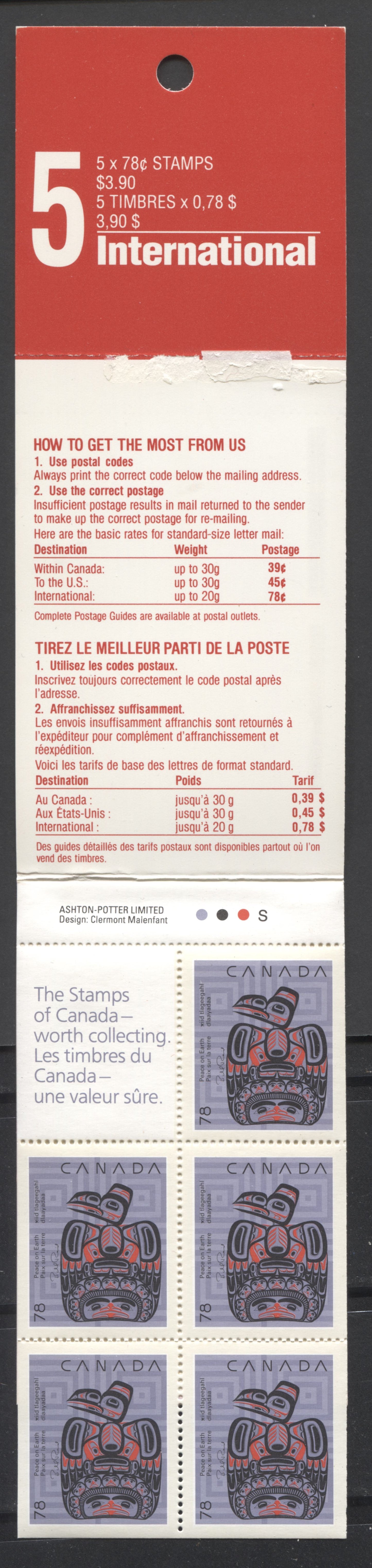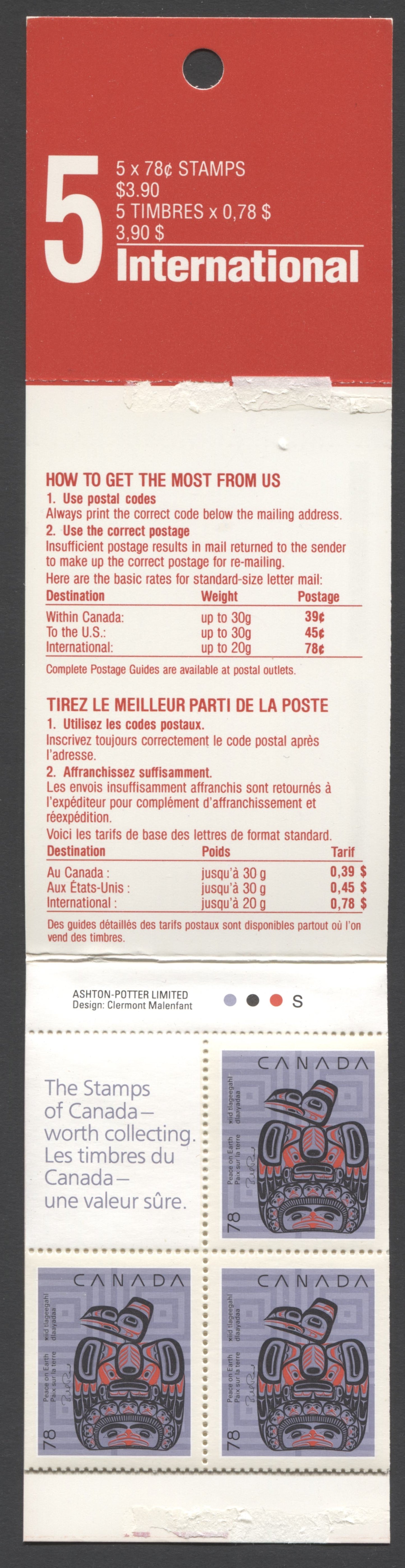 Canada #BK121 1990 Christmas Issue, Complete $2.25 Booklet, Slater Paper, Dead Paper, 4 mm GT-4 Tagging
