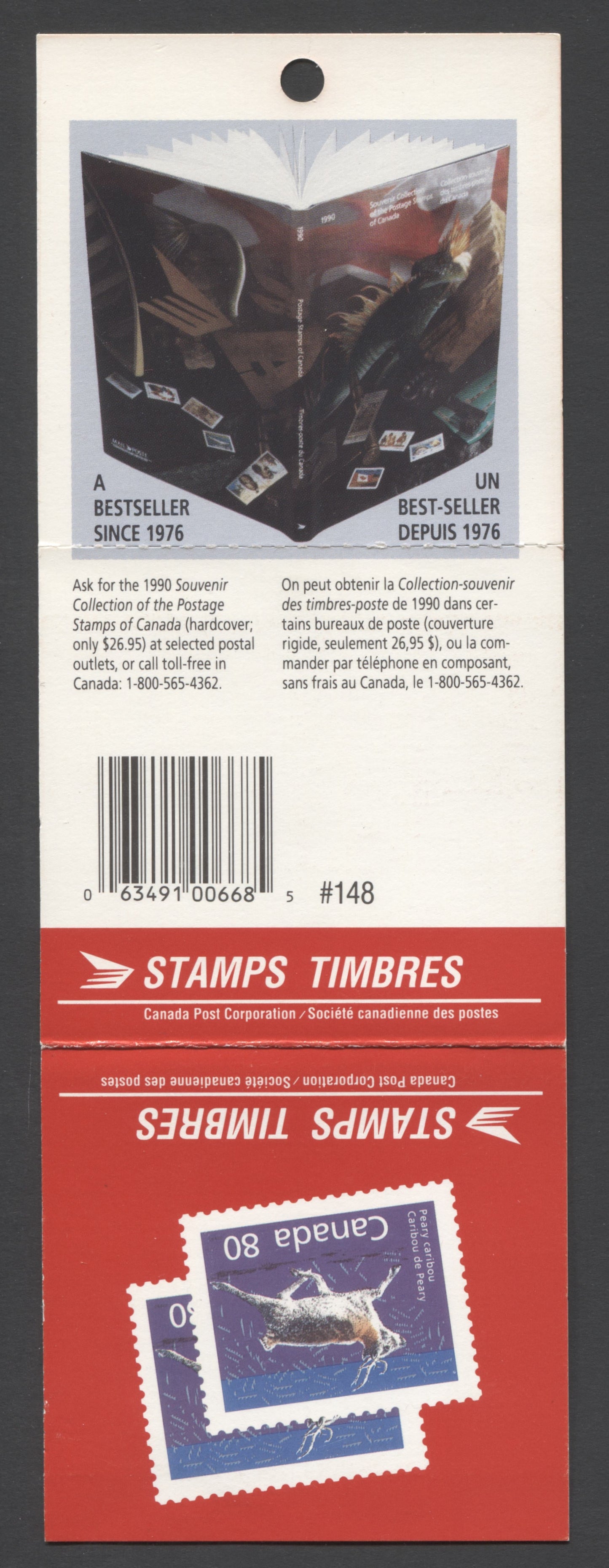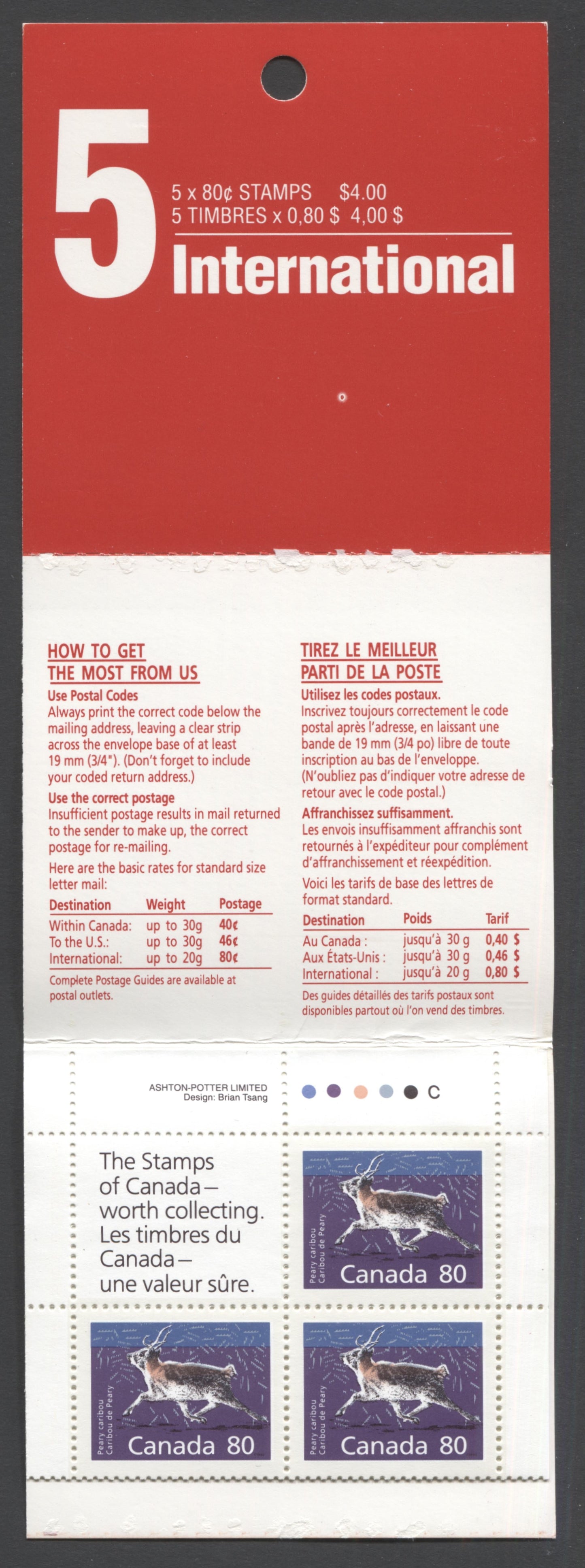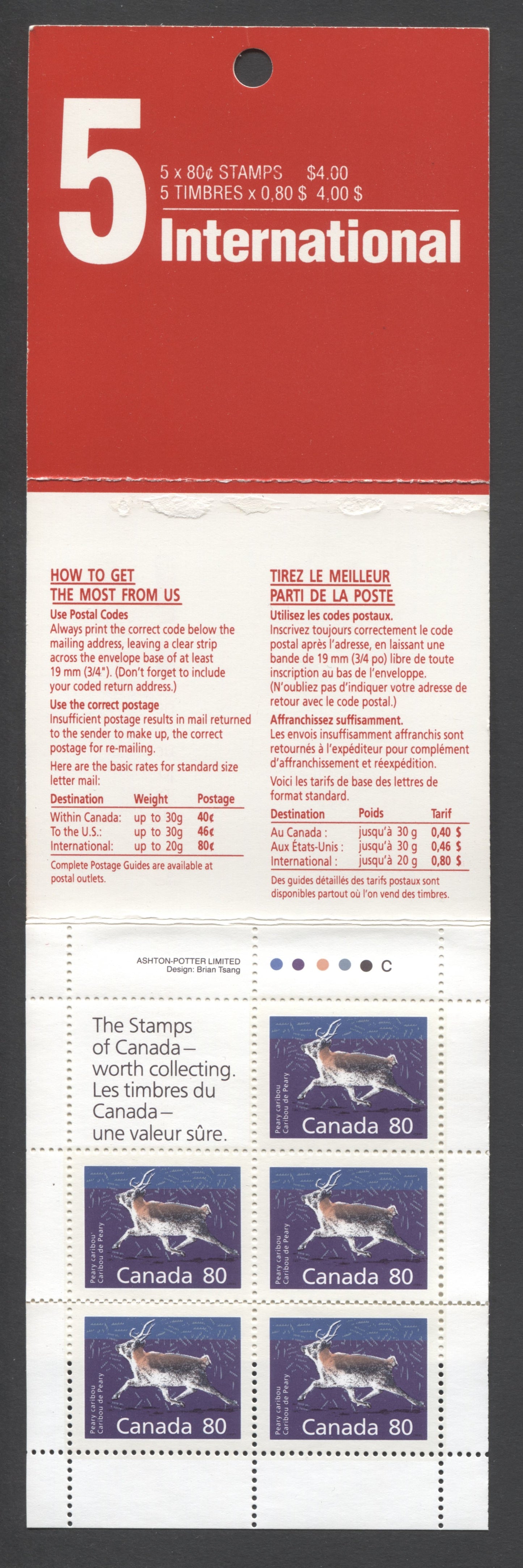 Canada #BK129 1988-1996 Mammal and Architecture Issue, Complete $4 Booklet, Coated Papers Paper, Dead Paper, 4 mm GT-4 Tagging