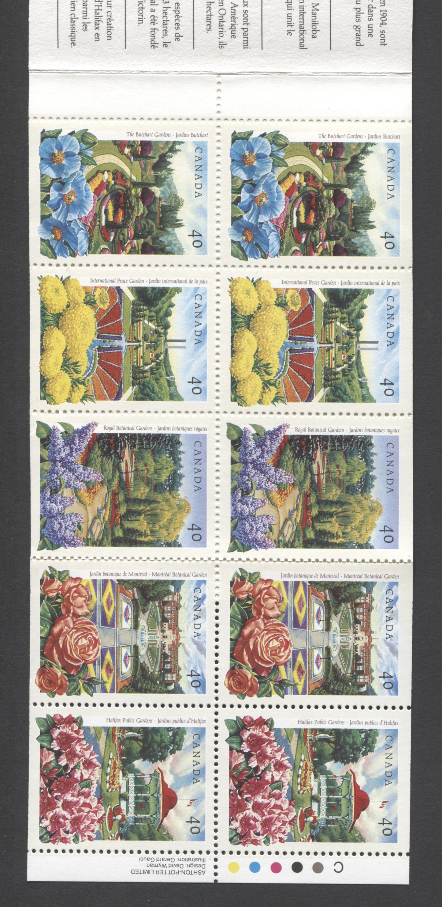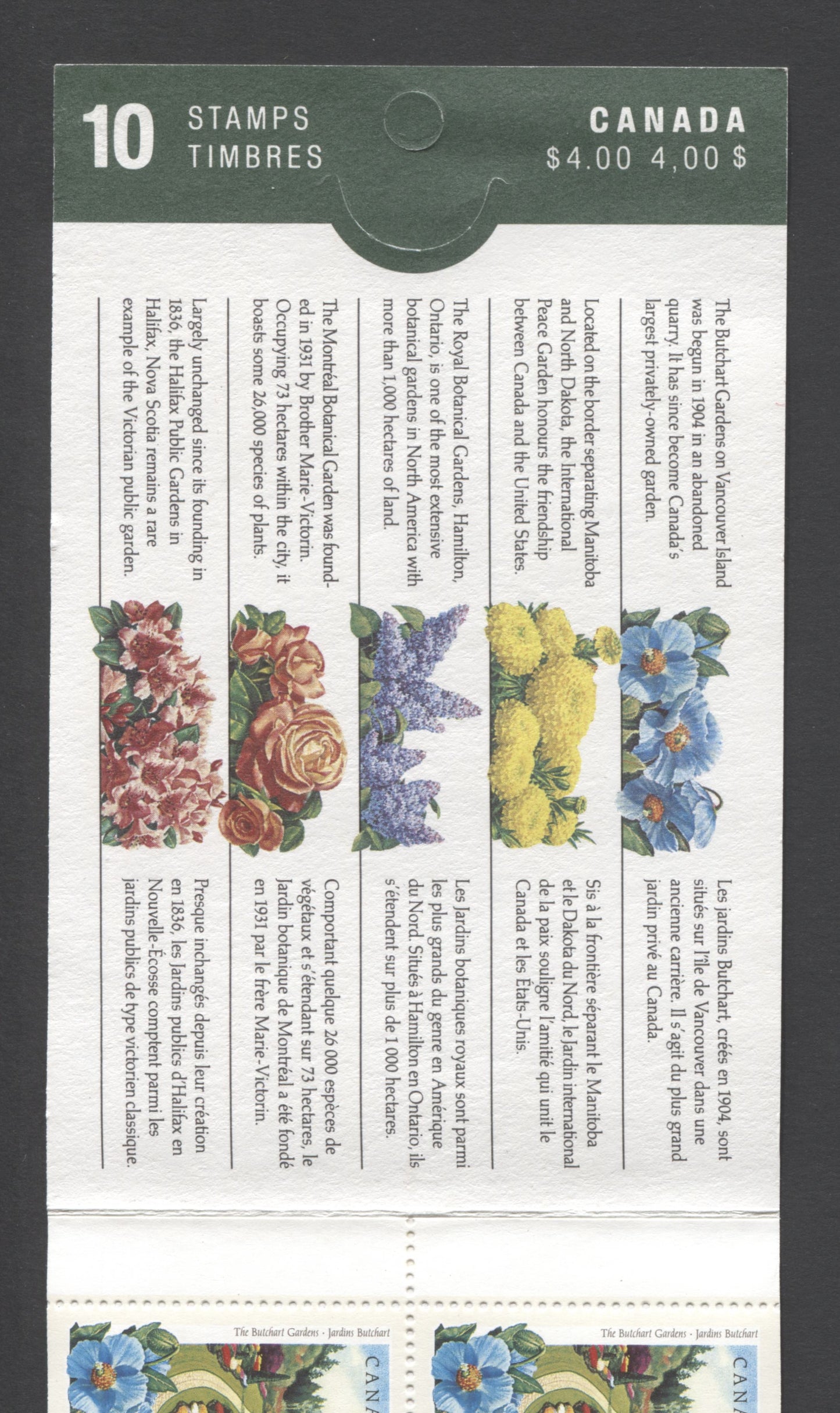 Canada #BK130a-b 1991 Public Gardens Issue, Complete $4 Booklet, Coated Papers Paper, Dead Paper, 4 mm GT-4 Tagging