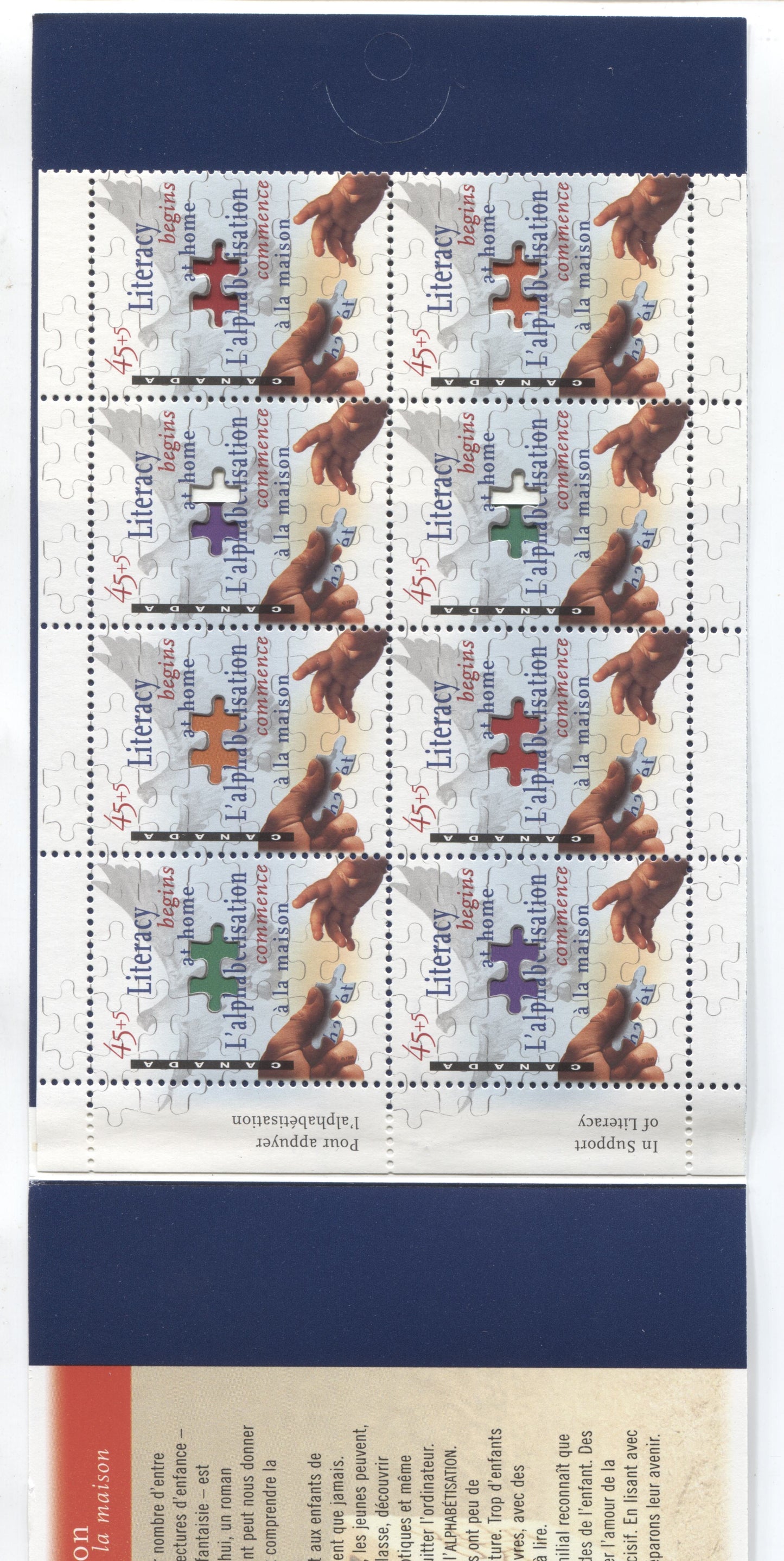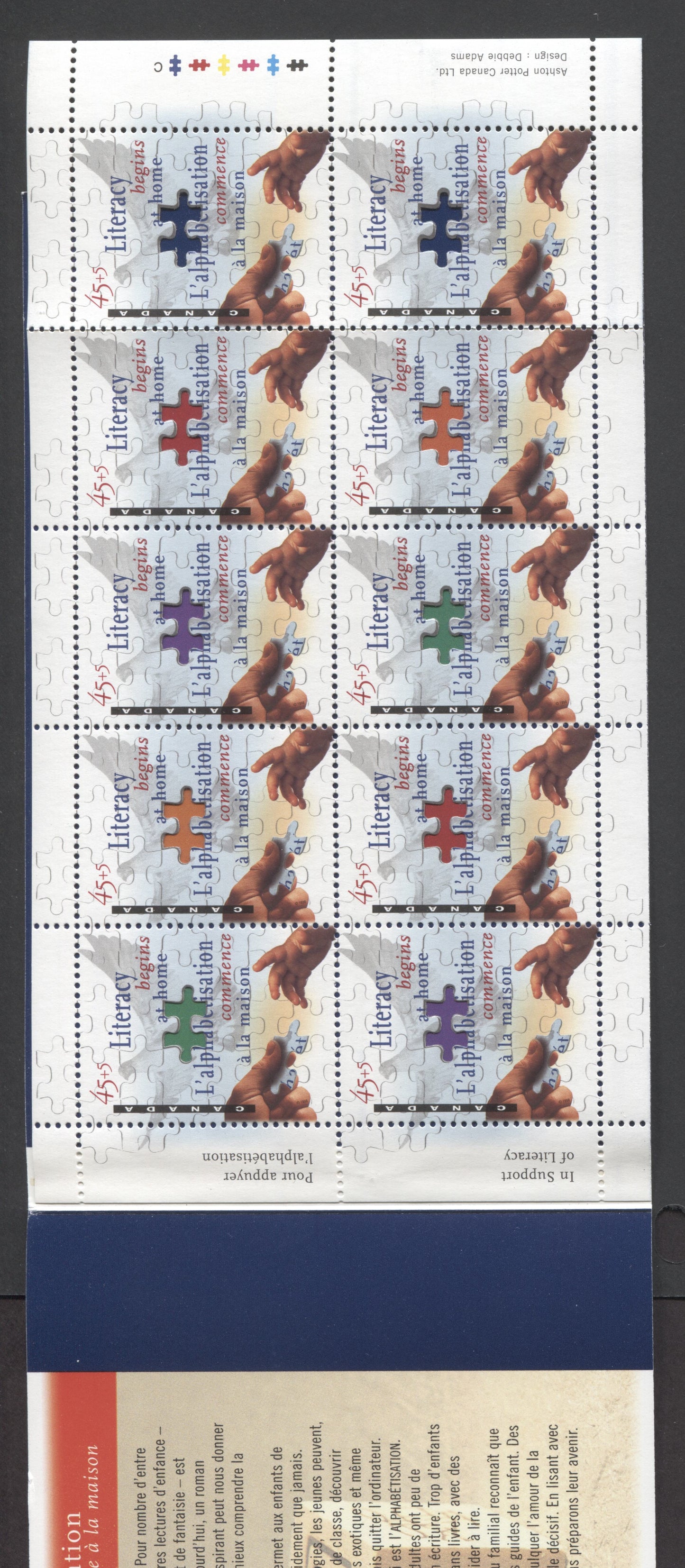 Canada #BK193a-b 1996 Literacy Issue, Complete $4.50 + 50¢ Booklet, Coated Papers Paper, Dead Paper, All Over Tagging