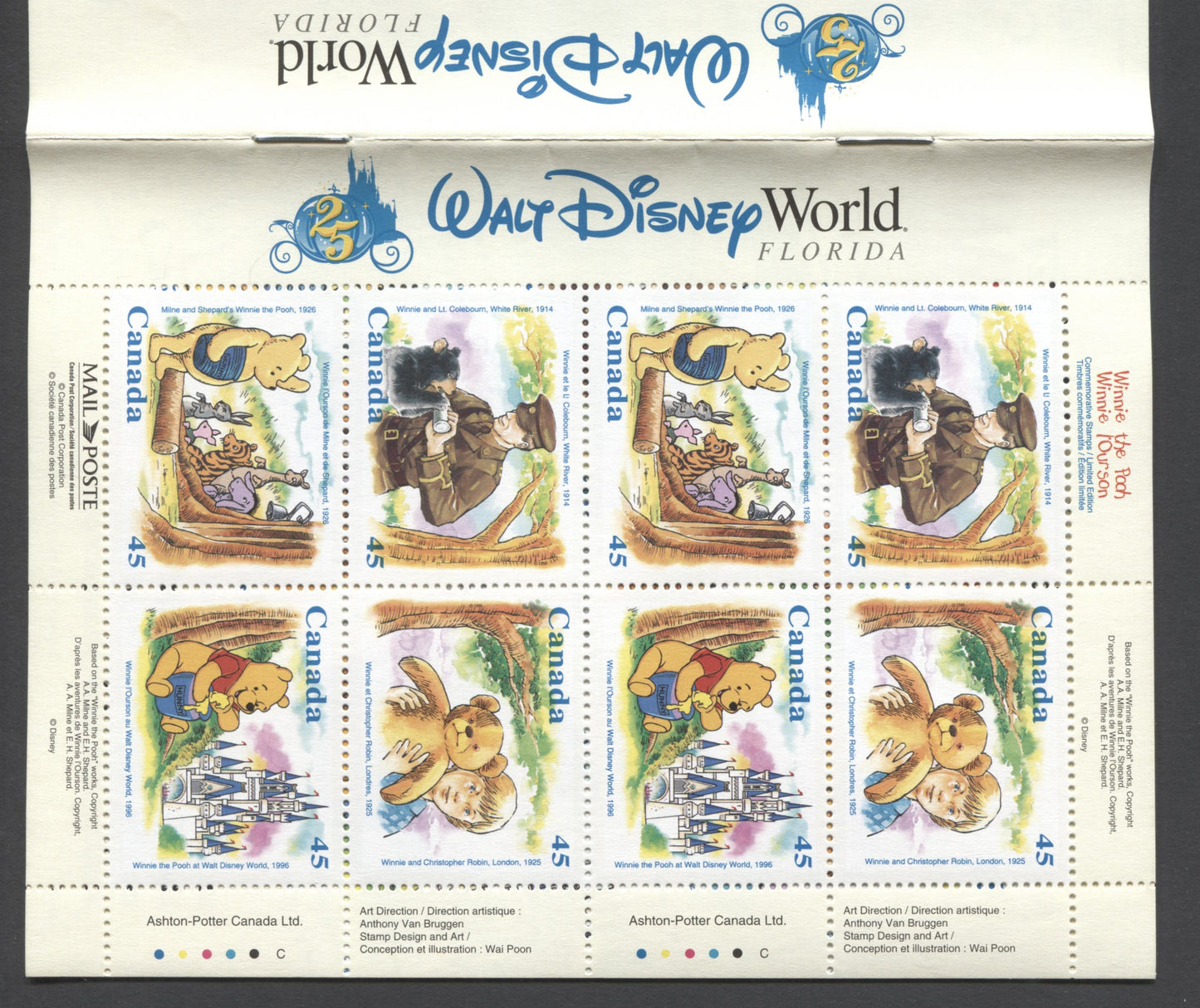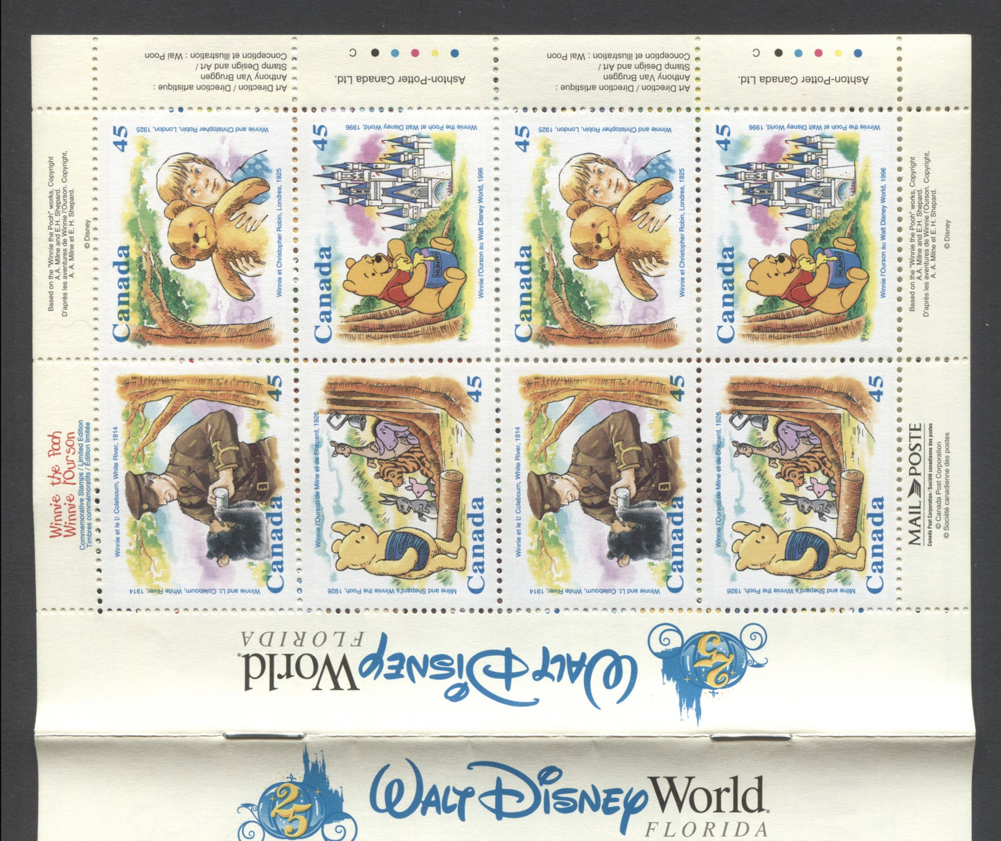 Canada #BK194 1996 Winnie the Pooh Issue, Complete $7.20 Booklet, Coated Papers Paper, Dead Paper, 4 mm GT-4 Tagging