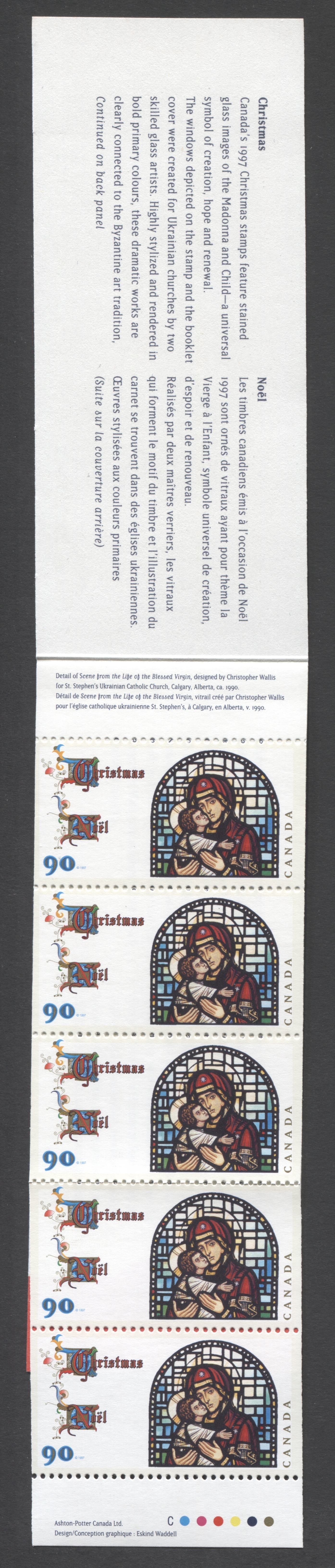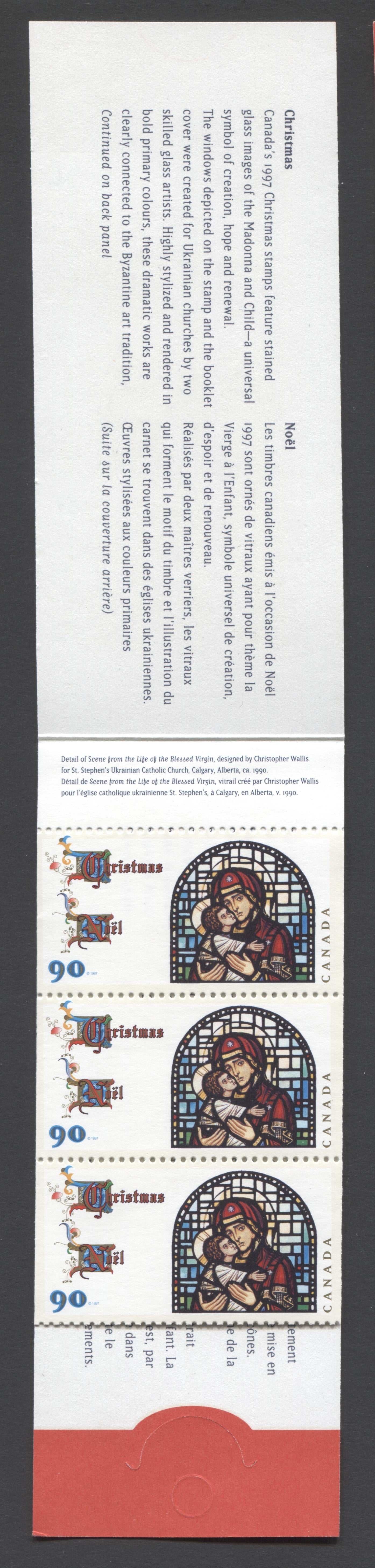 Canada #BK204a-b 1997 Christmas Issue, Complete $4.50 Booklet, Coated Papers Paper, Dead Paper, 4 mm GT-4 Tagging
