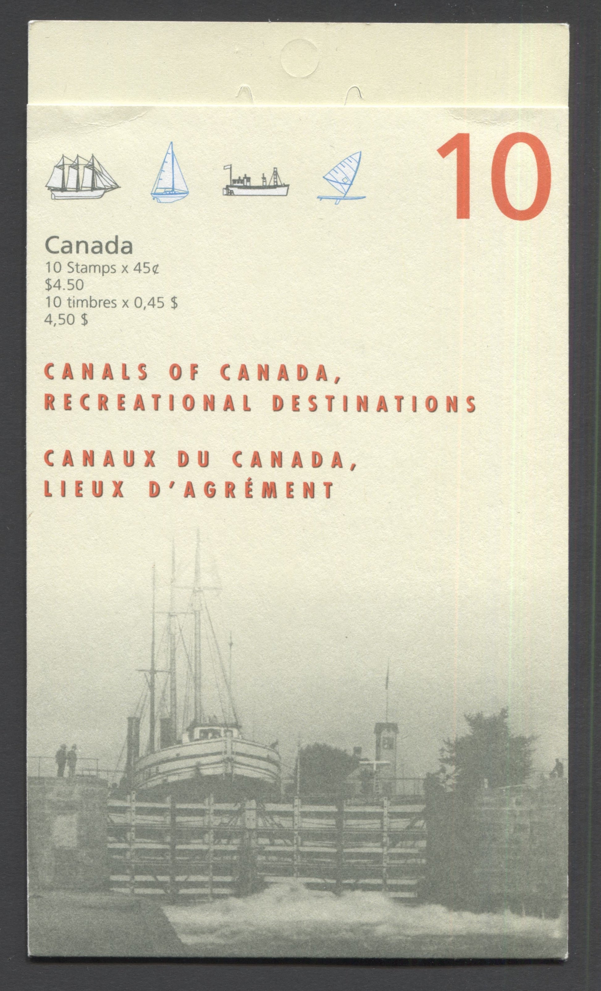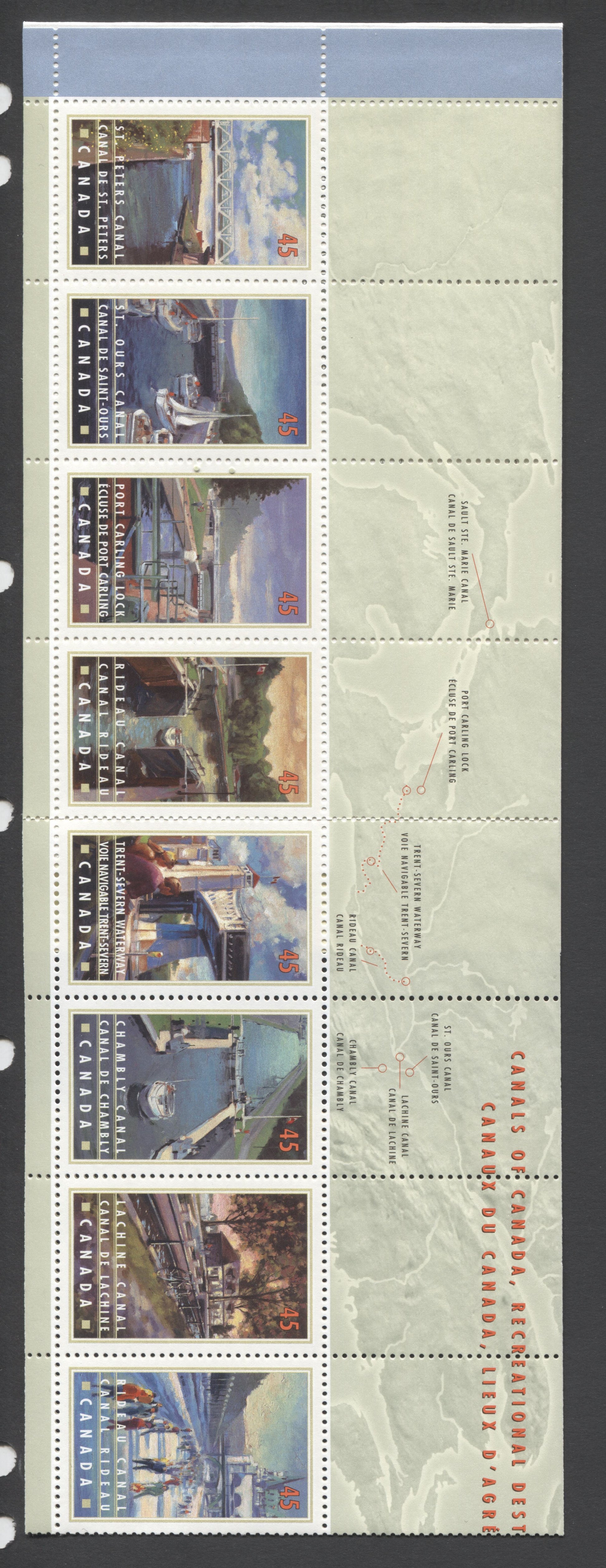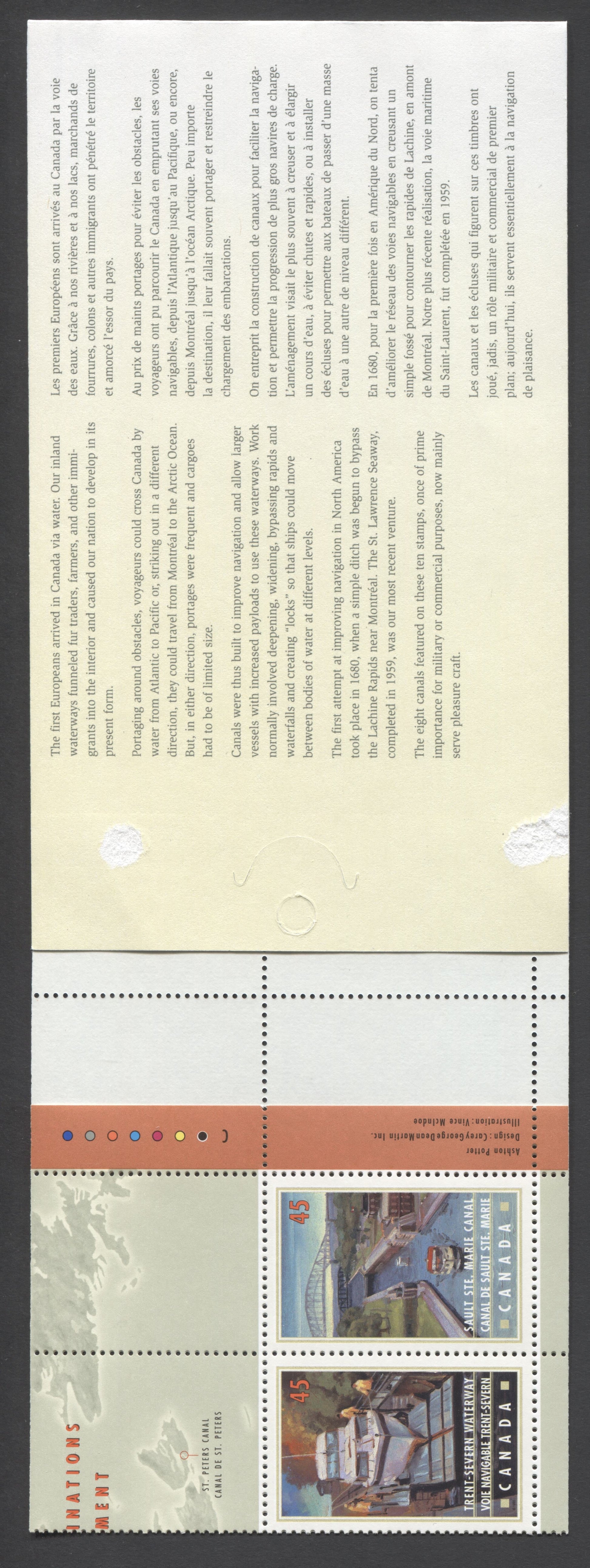 Canada #BK208a-b 1998 Canals Issue, Complete $4.50 Booklet, Tullis Russell Coatings Paper, Dead Paper, 4 mm GT-4 Tagging