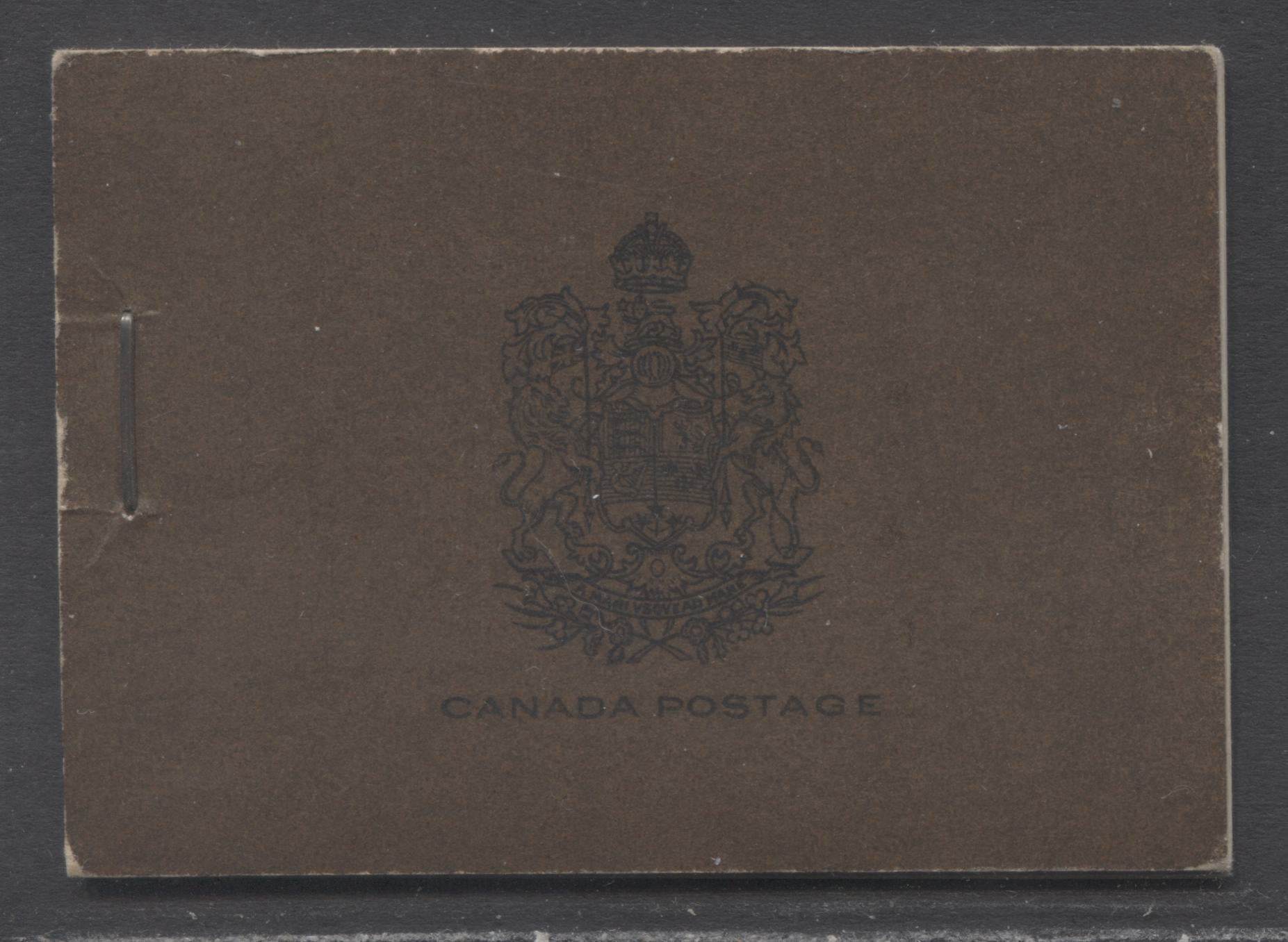 A complete 25c English booklet from the 1933-1934 Medallion Issue, with 2 panes of 6 2c black brown type II 'register' slogan, 103,000 issue. Unitrade values this booklet at $900.