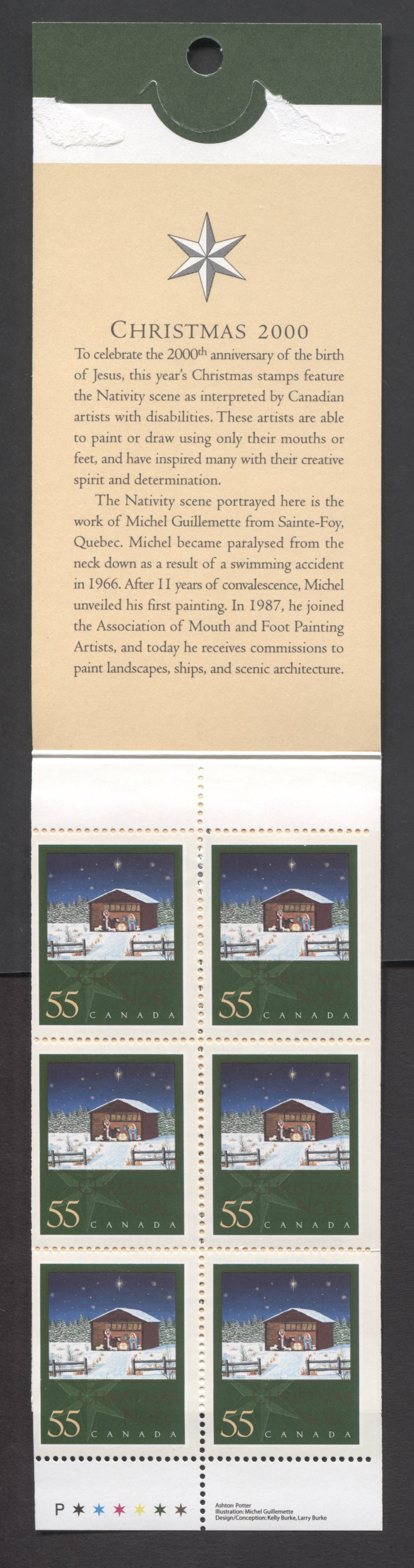 Canada #BK234a-b 2000 Christmas Issue, Complete $3.30 Booklet, Peterborough Paper, Dead Paper, 4 mm GT-4 Tagging