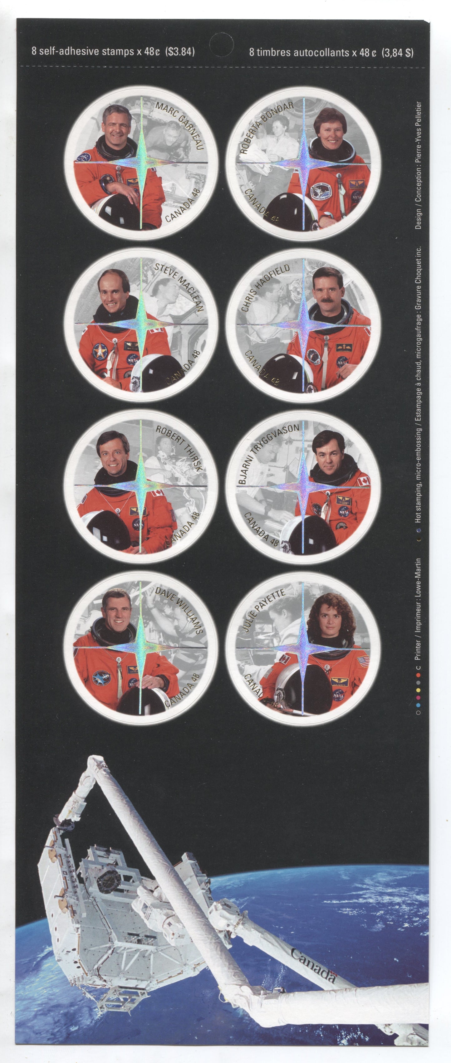Canada #BK276 2003 Canadian Astronauts Issue, Complete $3.84 Booklet, Tullis Russell Coatings Paper, Dead Paper, 4 mm GT Tagged to Shape