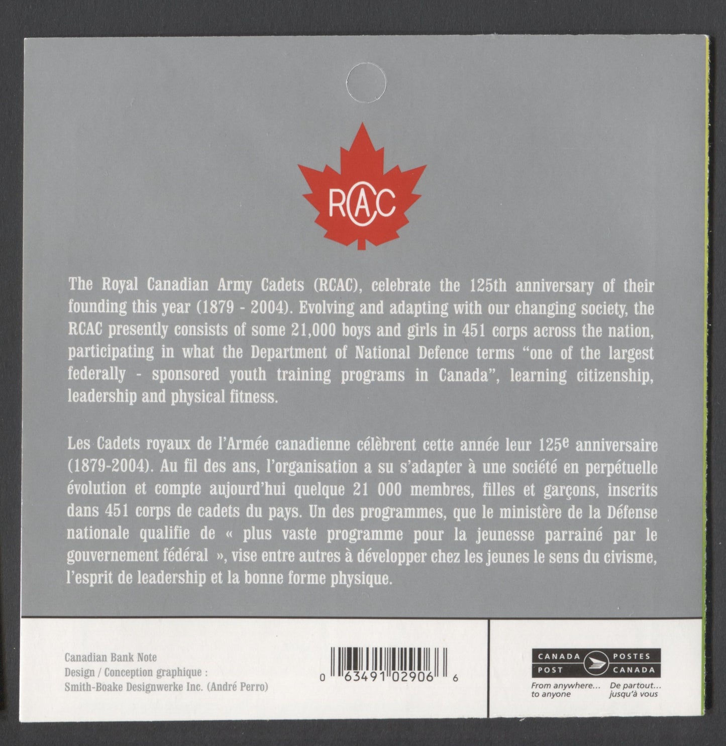 Canada #BK286 2004 Army Cadets Issue, Complete $3.92 Booklet, Tullis Russell Coatings Paper, Dead Paper, 4 mm GT-4 Tagging