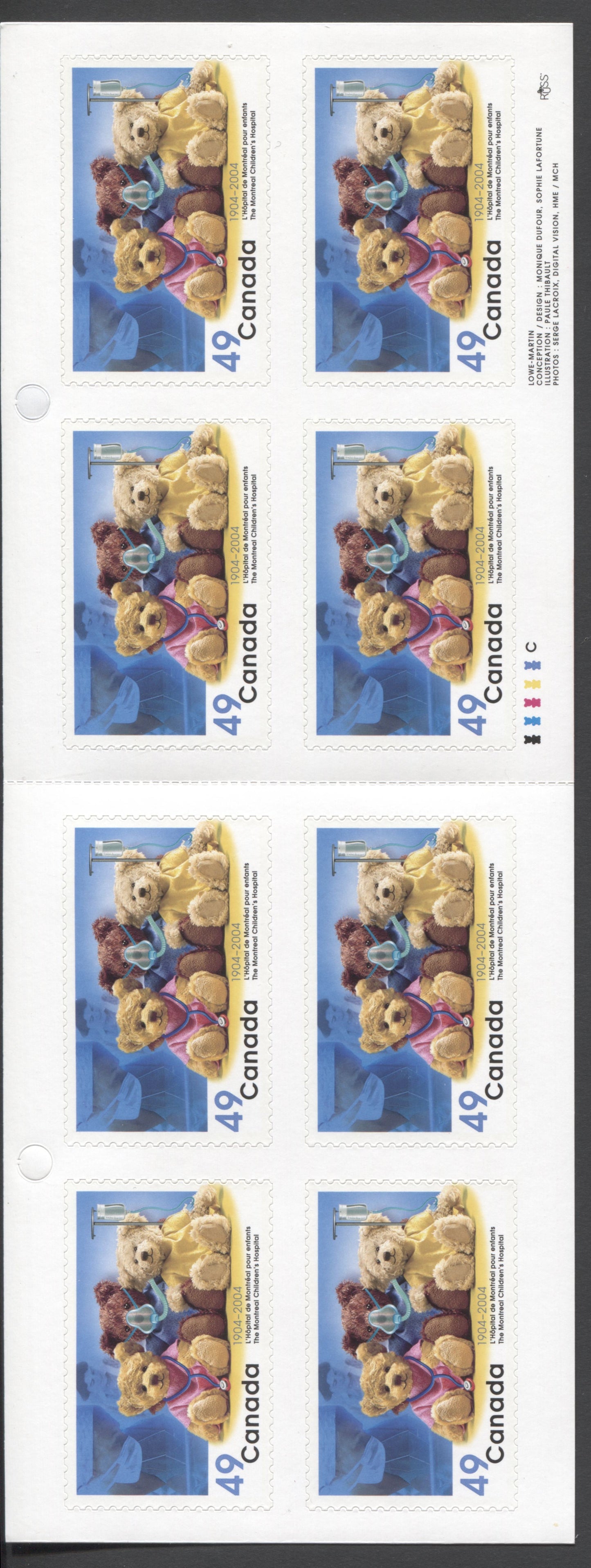 Canada #BK290 2004 Montreal Children's Hospital Issue, Complete $3.92 Booklet, Tullis Russell Coatings Paper, Dead Paper, 4 mm GT-4 Tagging