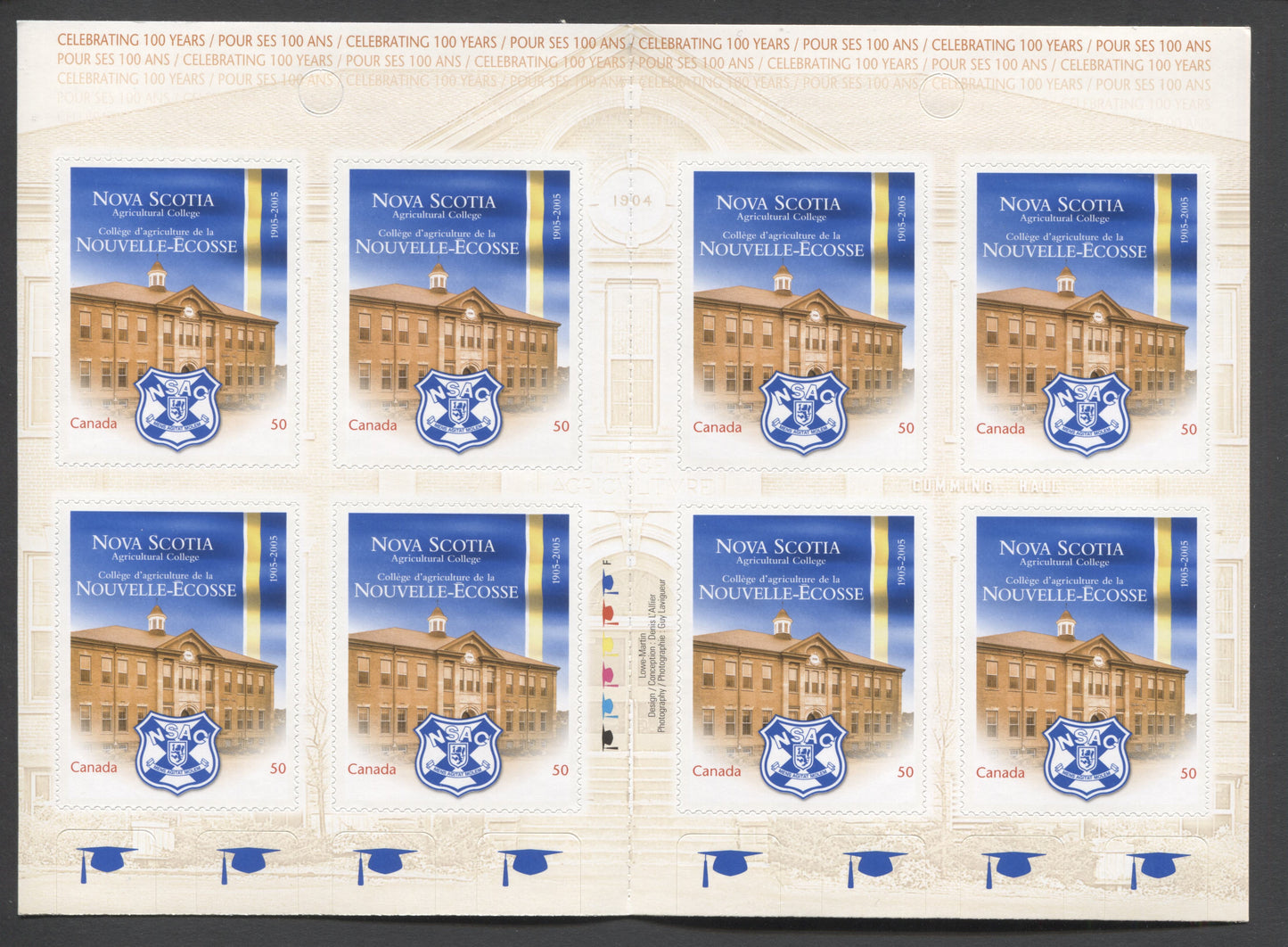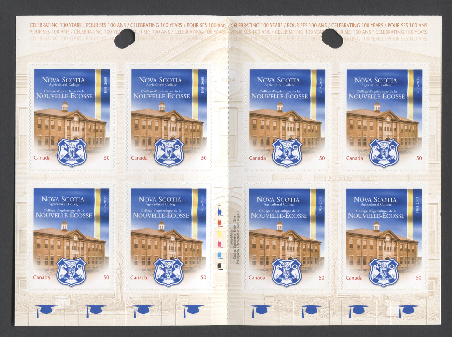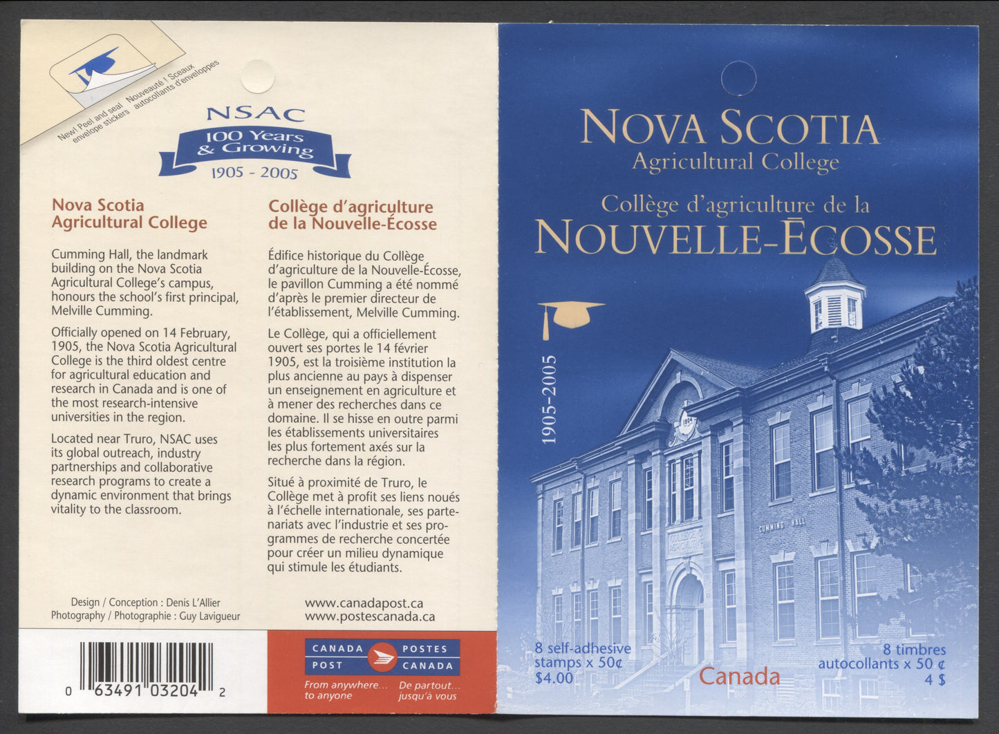 Canada #BK307 2005 Nova Scotia Agricultural College Issue, Complete $4 Booklet, Fasson Paper, Dead Paper, 4 mm GT-4 Tagging