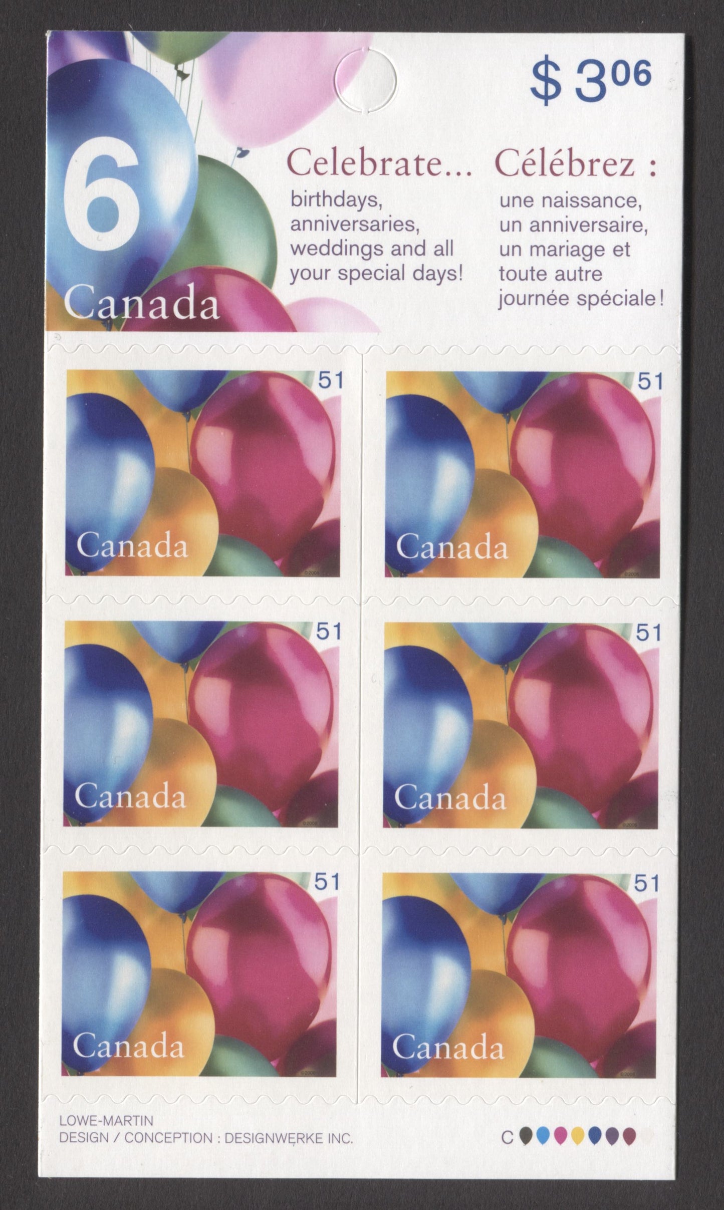 Canada #BK323 2006 Birthdays Issue, Complete $3.06 Booklet, Tullis Russell Coatings Paper, Dead Paper, 4 mm GT-4 Tagging