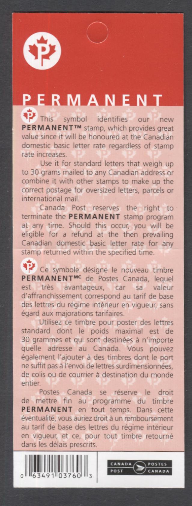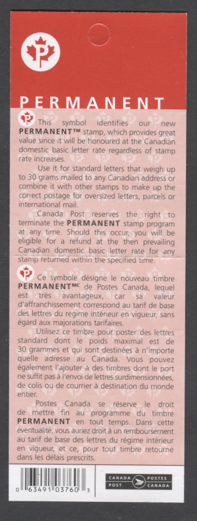 Canada #BK341 2004-2010 Floral & Canadian Pride Definitives, Complete $5.10 Booklet, Tullis Russell Coatings Paper, Dead Paper, 4 mm GT-4 Tagging