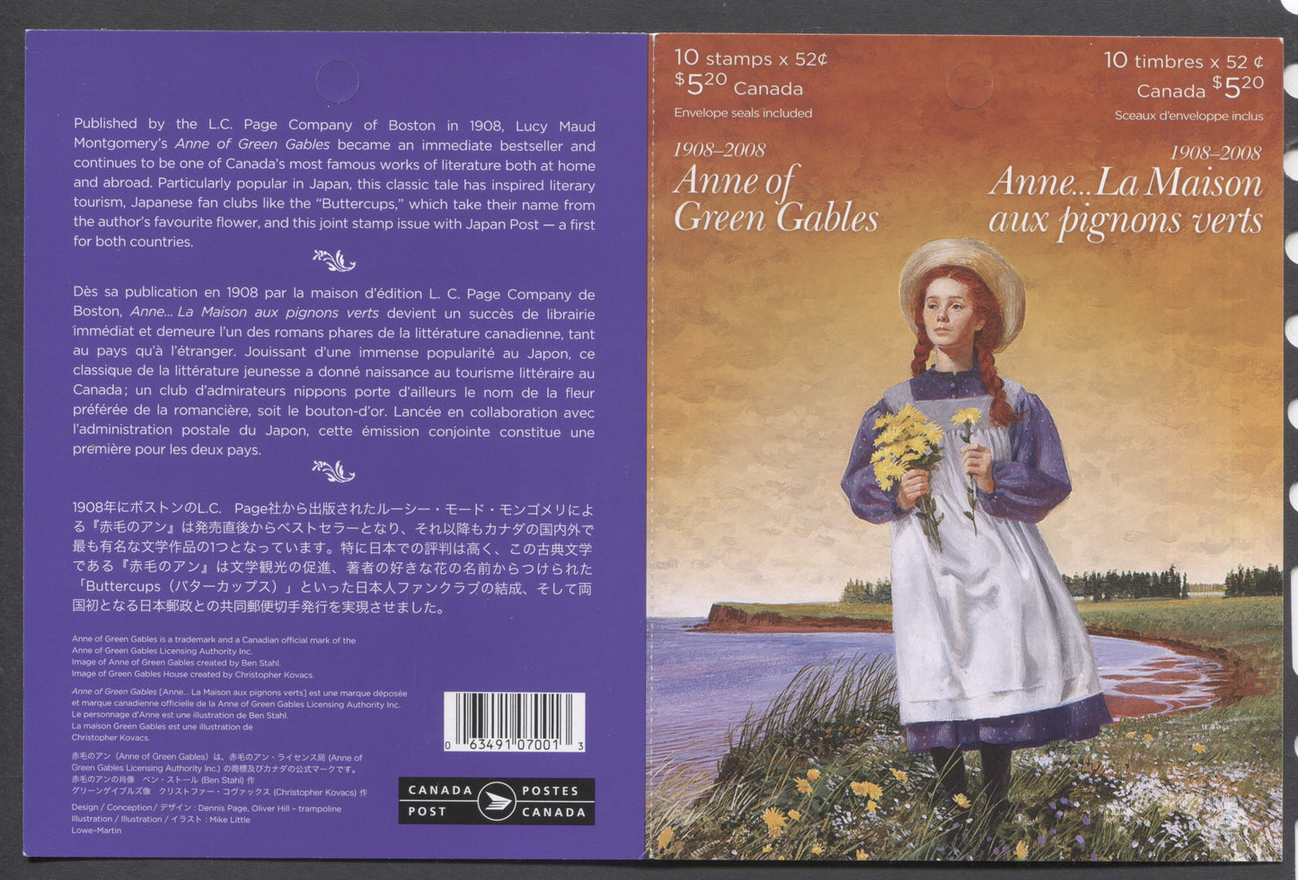 Canada #BK380 2008 Anne of Green Gables Issue, Complete $5.20 Booklet, Tullis Russell Coatings Paper, Dead Paper, 4 mm GT-4 Tagging