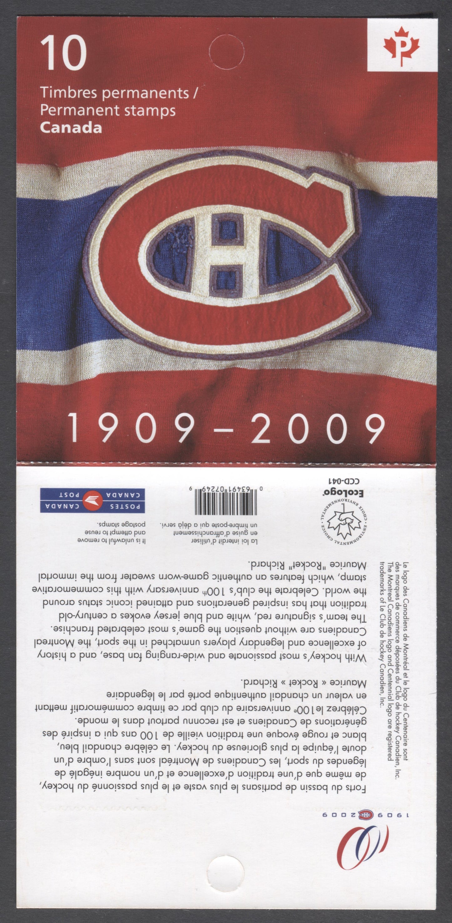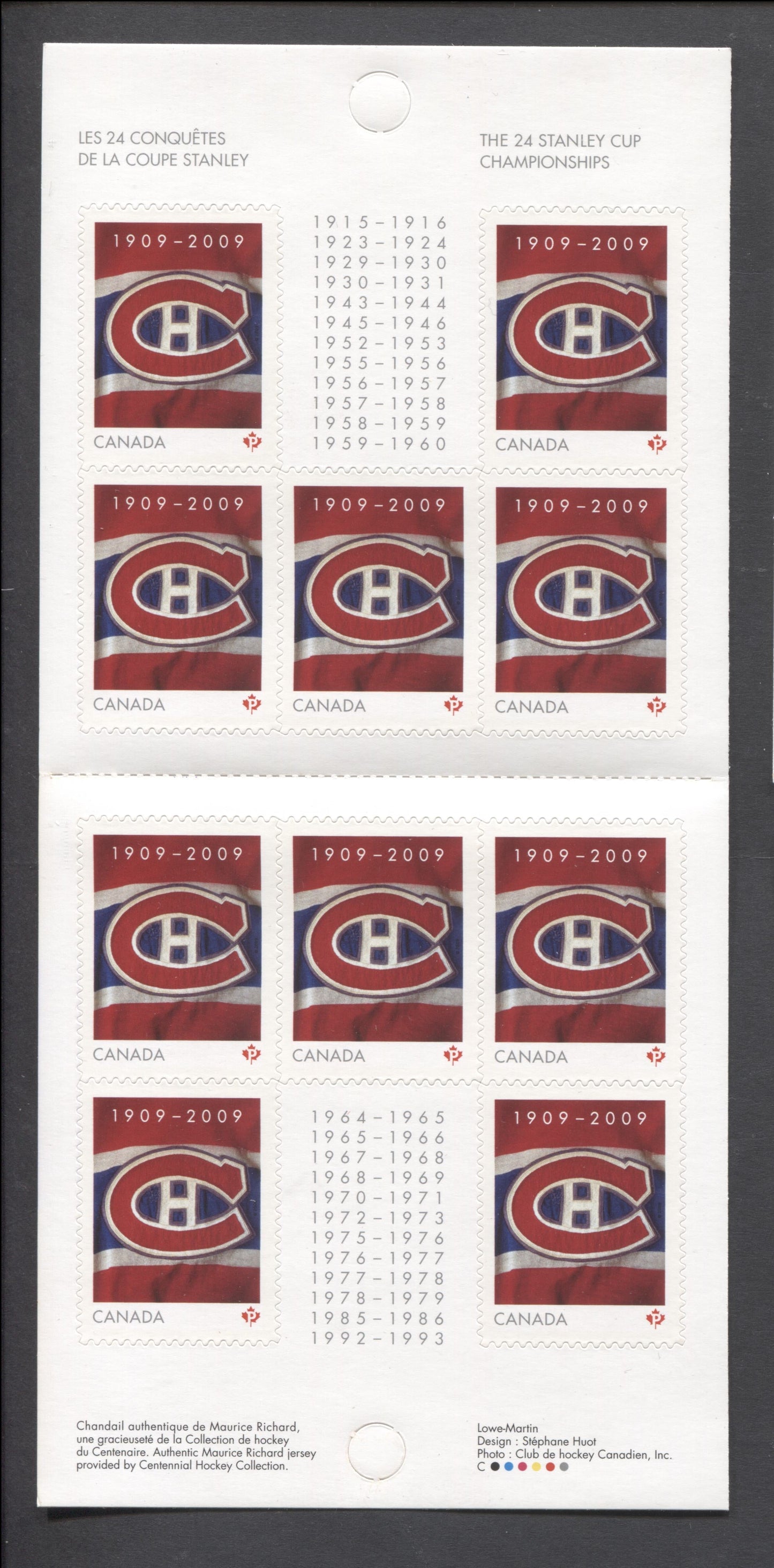 Canada #BK411 2009 Montreal Canadienes Issue, Complete $5.40 Booklet, Tullis Russell Coatings Paper, Dead Paper, 4 mm GT-4 Tagging