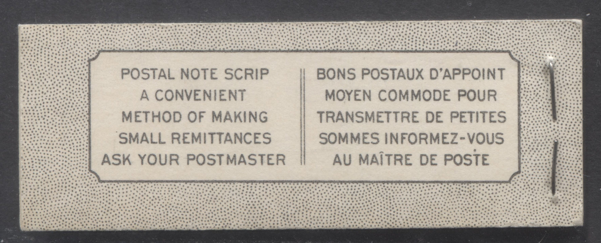 For the booklets from this issue, the quantities issued refer to the total number of booklets issued for all rate page types, all staple sizes and all Harris front and back cover types for a particular denomination of booklet in English or French. They come from the McCann catalogue, which does not break the quantity down into the individual varieties. Consequently, depending on how many listed types there are, many of these booklets are much, much scarcer than the overall issue quantities would suggest. For example, according to McCann, there were 699,000 English 25c booklets containing four panes of 6 1c green stamps issued. However, there were seven different basic rate-page and cover type combinations, not counting the Harris sub-types. If they were more or less evenly distributed among these types, that is just under 100,000 of each type, and then this gets broken down further into between 2 and 8 Harris sub-types each. So, this places these issue quantities into a more accurate perspective. This is even more acute in the case of the chewing gum booklets for both issues, as for the English booklets there were 16 possible cover combinations, while for the french there were 64, and still for the bilingual there were 225 possible combinations of front and back covers. Some of these are so rare that they have yet to be reported.