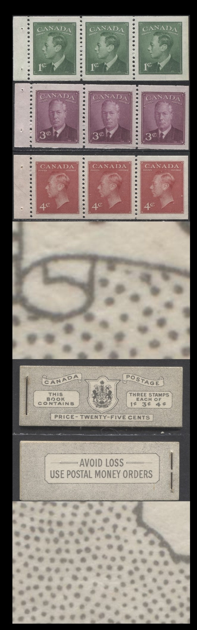 Lot 60 Canada #BK43bE 1949-1951 KGVI Issue, A Complete 25c English Booklet With 1c Green, 3c Rose Violet & 4c Dark Carmine, Panes Of 3. Front Cover IVa, Back Cover Iiv, Type II Cover, No Rate Page, 914,500 Issued