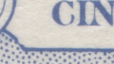 There are 7 constant varieties that can be found on the front cover type IIIh and one that can be found on the back cover. The back cover variety that can be found consists of a small arc-like projection that runs downward from the middle of the text box on the back. On the front cover, the scarcest variety consists of a break on the scroll below "Canada", and a break in the text box above "Five". The most common varieties are a dot on the inside frameline of the shield at lower right, and a dot to the upper right of the shield. These usually appear together on certain front cover IIIh. In additoon, these same covers can also be found with a small break in the text box to the left of "cinq", or with a notch at this position. Ocasionally a break can also be found in the arched ornament that surrounds the crown on the sheild. Some attempts were made to repair these flaws, as examples of this booklet can be found showing the dot to the right of the shield being removed by retouch. The other frame breaks appear to have either been repaired or disappeared on their own. The dot inside the sheild on the inner frameline is the only variety that does not appear to have been noticed or retouched.