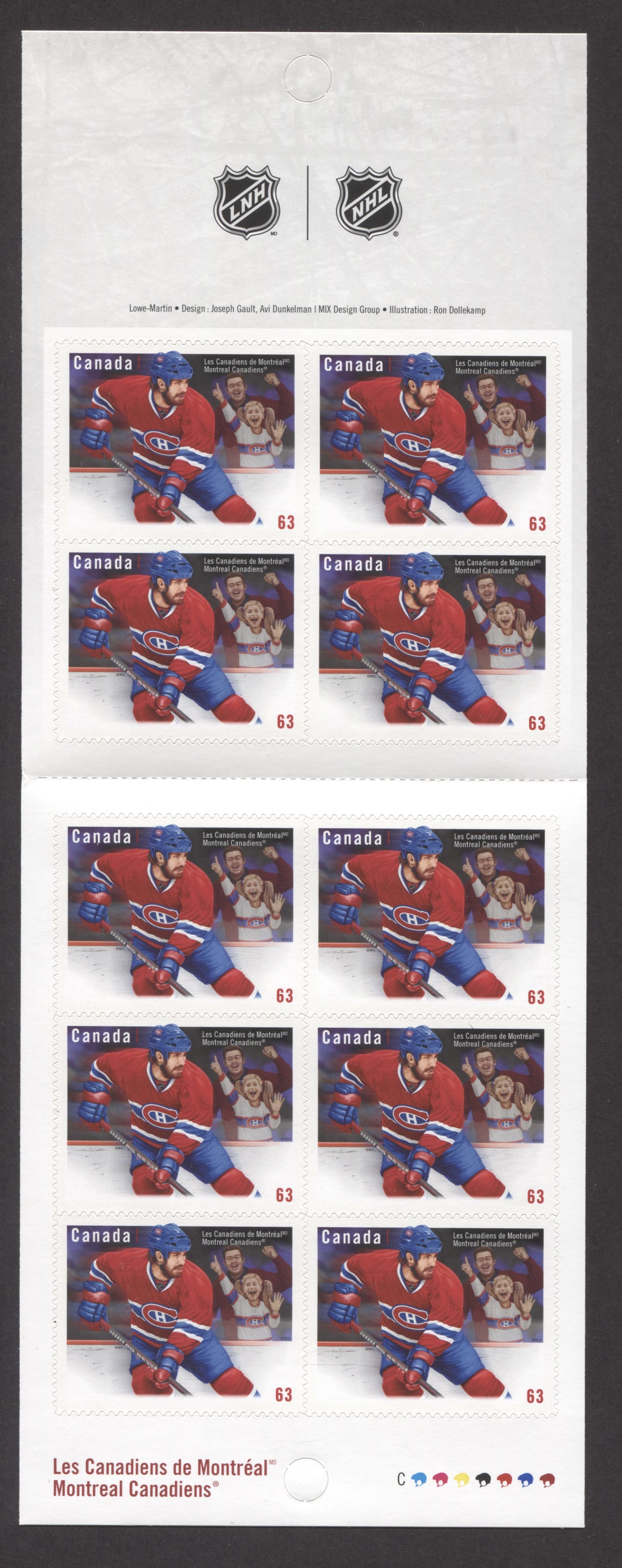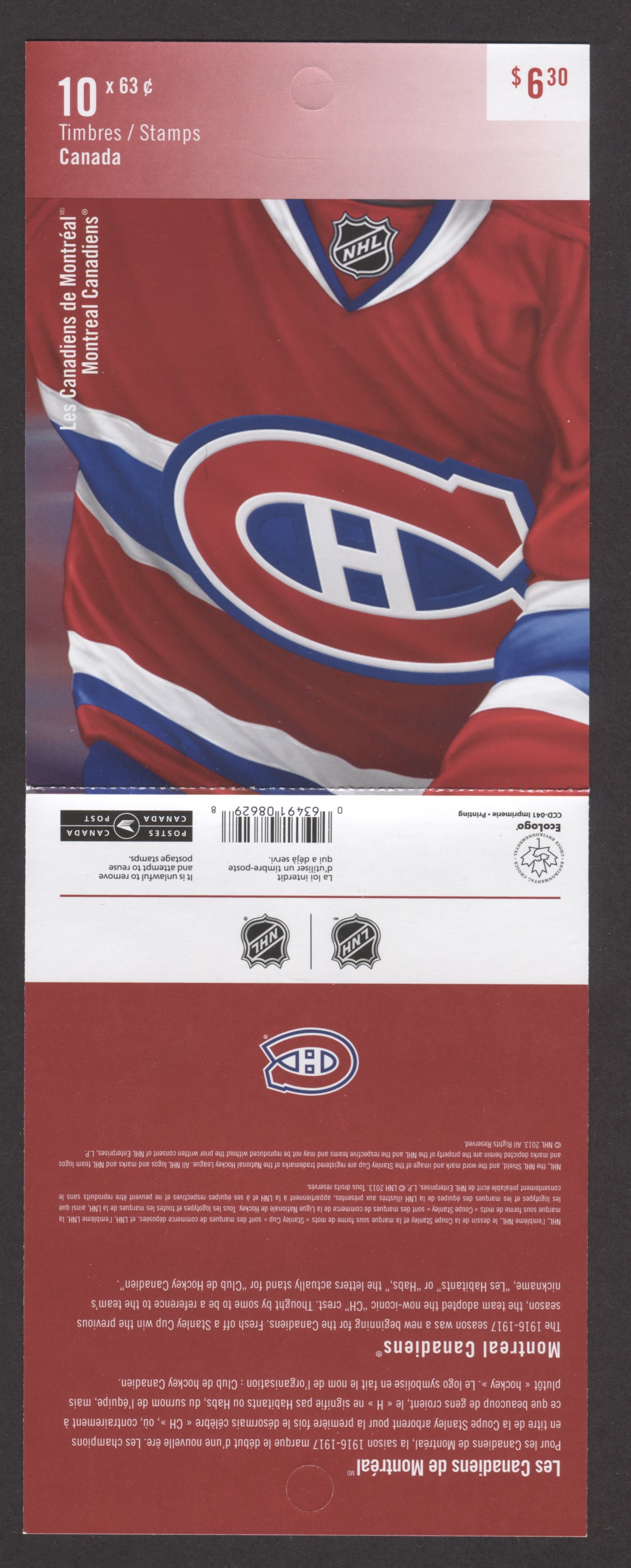 Canada #BK549 2013 NHL Issue - Montreal Canadiens, Complete $6.30 Booklet, Tullis Russell Coatings Paper, Dead Paper, 4 mm GT-4 Tagging
