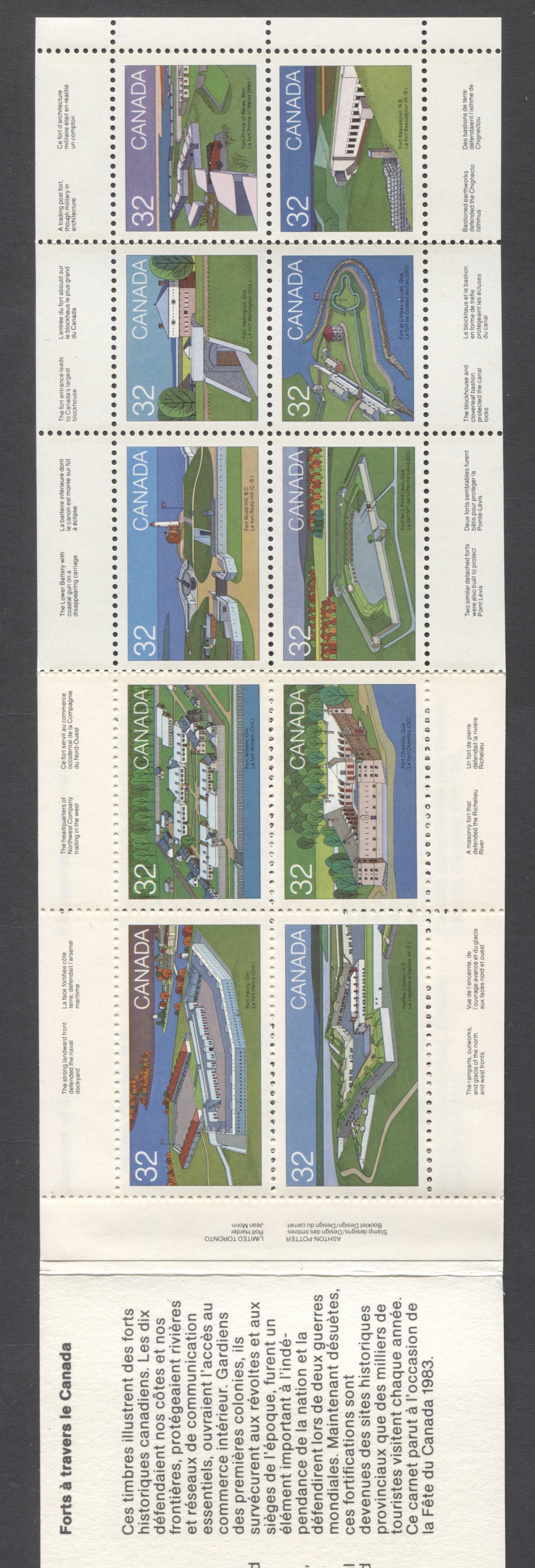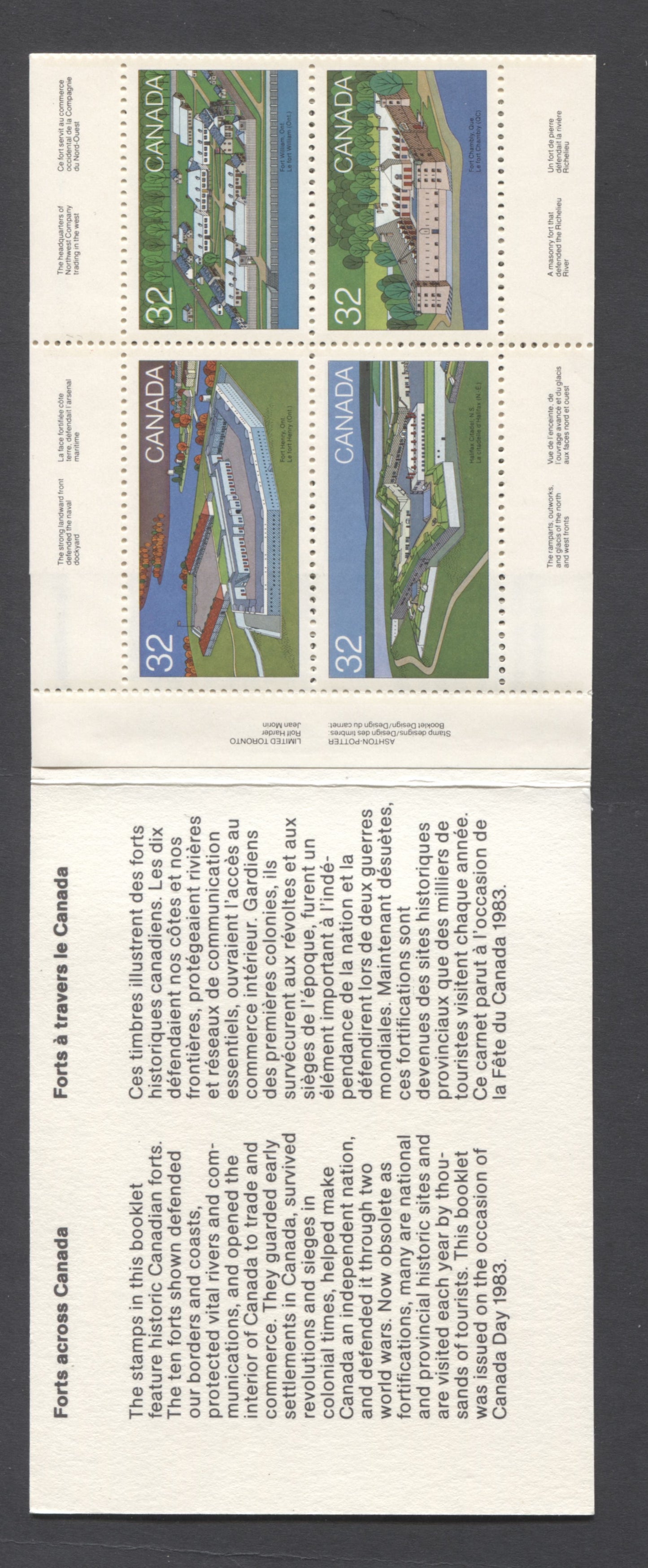 Canada #BK86 1983 Canadian Forts Issue, Complete $3.20 Booklet, Coated Abitibi Paper, Low Fluorescent Paper, 4 mm GT-2 Tagging