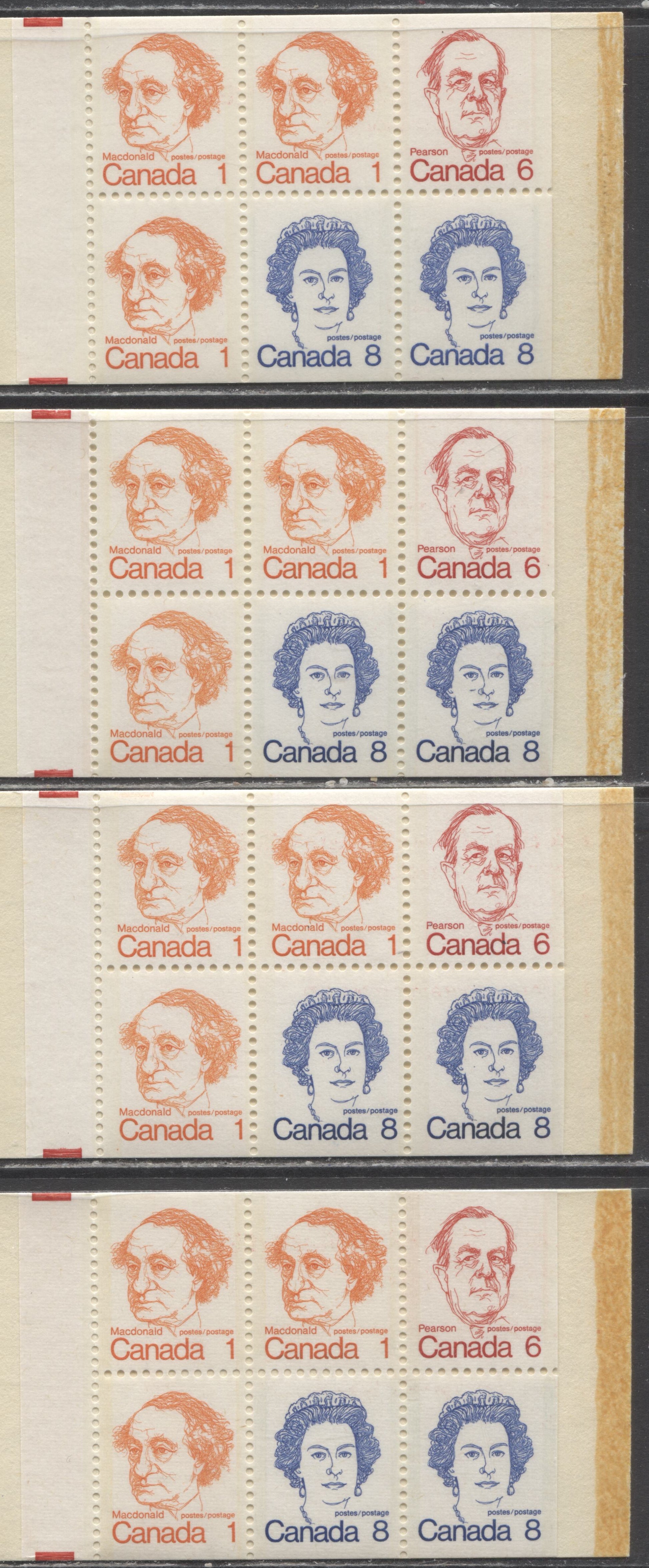 Canada McCann #BK74h,aa,agi 1972-1978 Caricature Issue, 4 Complete 25c Booklets, DF Covers, NF/NF, DF/DF, MF/MF & HF/HF Papers