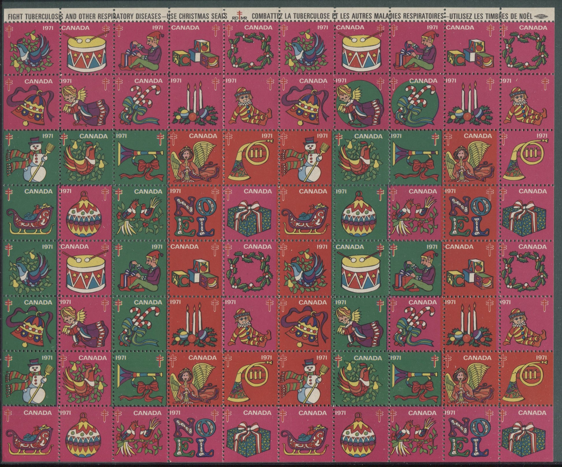 Canada #WX70 Multicoloured Christmas Symbols, 1971 Christmas Seal Issue, A VFNH Full Sheet Of 80