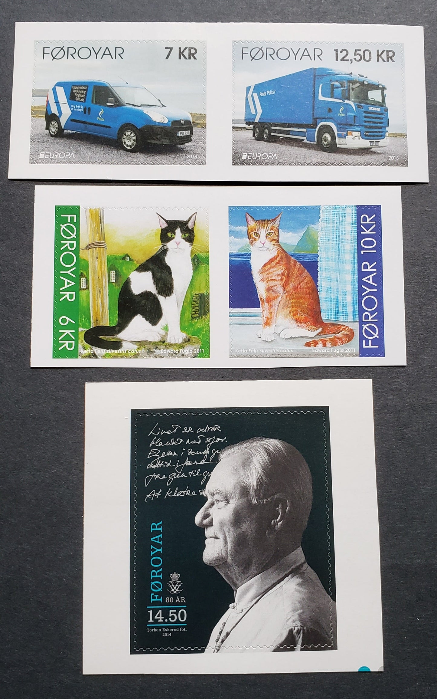 Lot 91 Faroe Islands SC#553/628 2011-2014 Cats - 80th B Day Of Prince Henrik, 3 VFNH Self-Adhesive Booklet Stamps, Click on Listing to See ALL Pictures, 2017 Scott Cat. $18.5