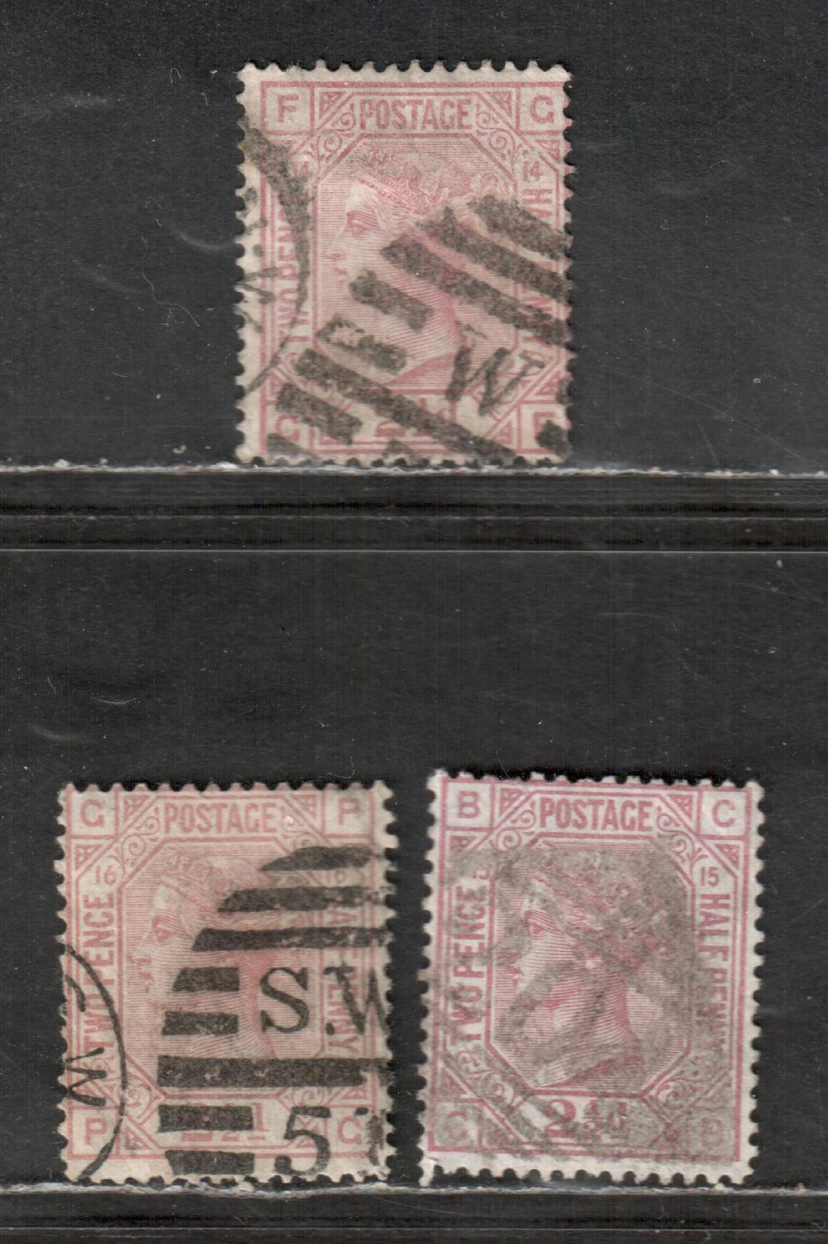 Lot 153 Great Britain SG#141, SC#67 1876-1880 Queen Victoria Issue, 2 1/2d Rosy Mauve, Plates 14,15,16 Orb Wmk, 3 Very Good Used Singles, Click on Listing to See ALL Pictures, Estimated Value $63