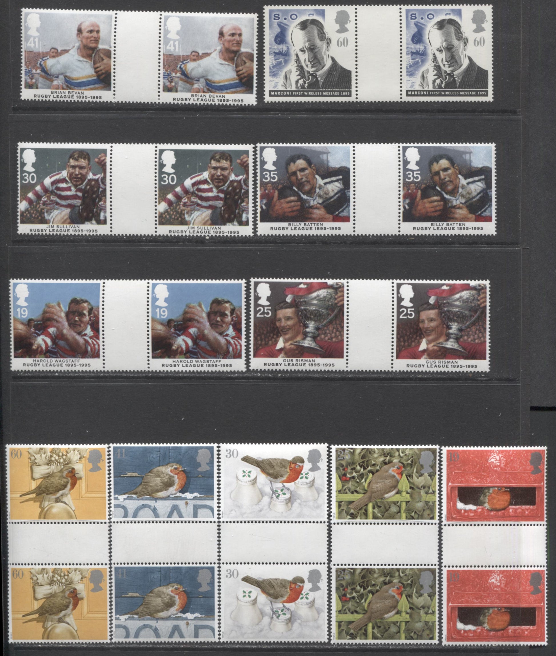 14 VFNH gutter pairs from the 1995 Pioneer's Of Communication, Rugby League & Christmas. 2018 Gibbons Concise cat. £12.9. Our estimate of the value based on the condition is $21.