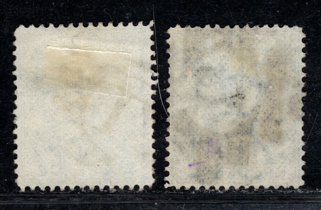 2 very fine used singles of the 6d green & bluish green Queen Victoria from the 1876-1879 Queen Victoria Keyplates Issue crown cc wmk, perf 14, lagos barrel killer cancels.