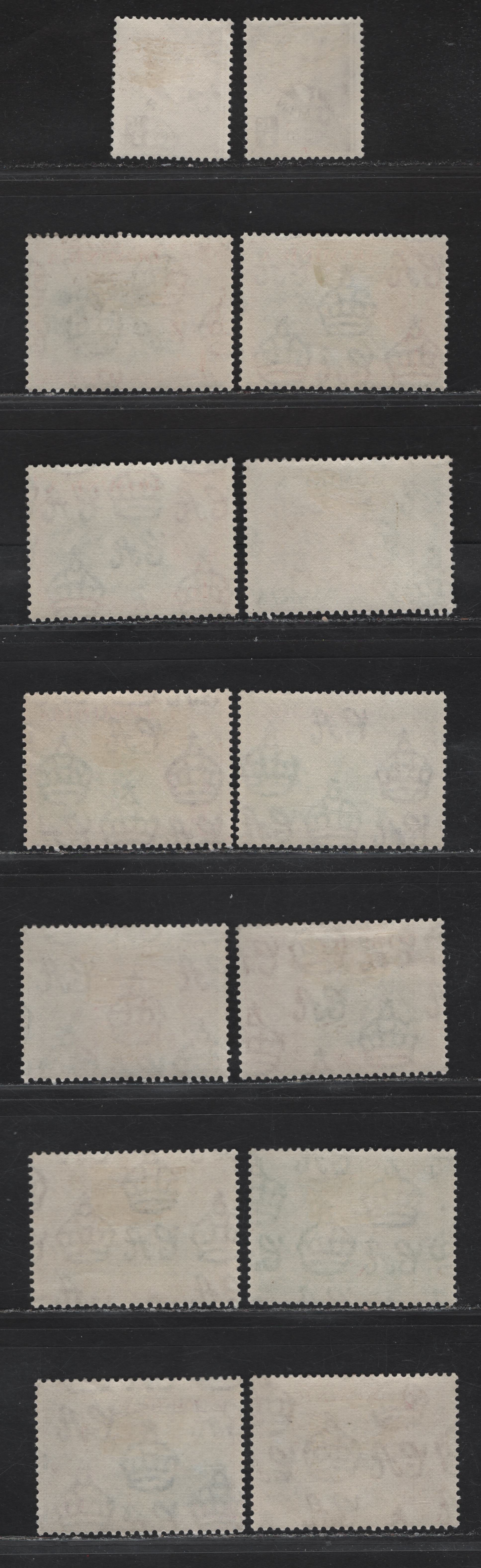 14 VFOG singles of the 1/2c - 24c chocolate - reddish violet & rose carmine King George VI - Boiling Lake from the 1951 KGVI Pictorial Issue, different shades of several values, being 1951 & 1952 printings.