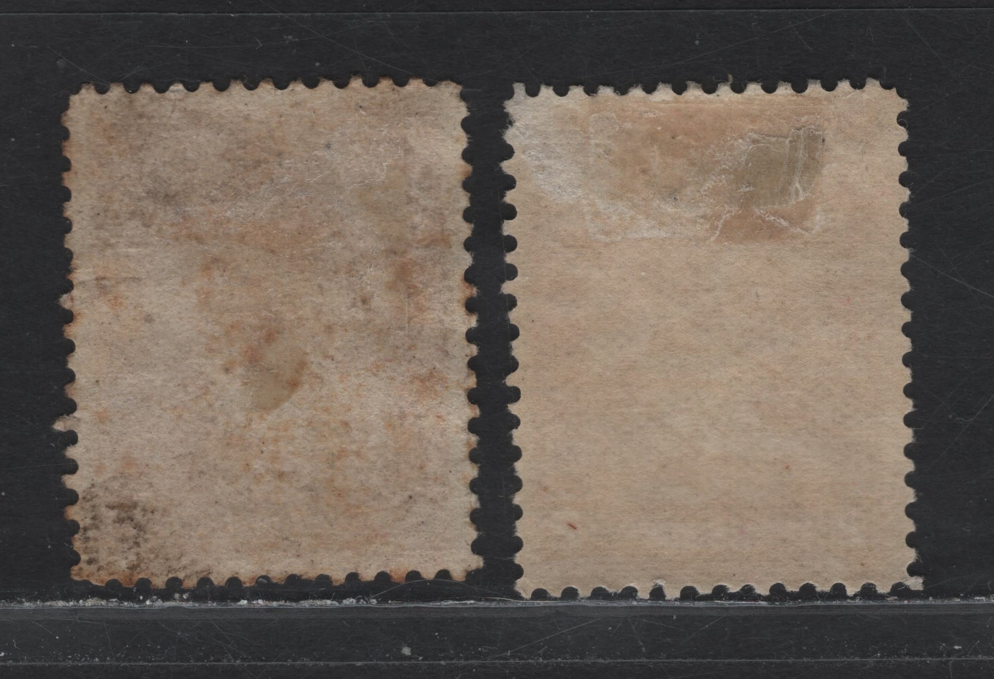 2 FOG & VFUN singles of the 2c carmine & rose carmine from the 1908 Map Of Newfoundland Issue on ABNN-M,ABNN-N, perf 12x11.8 and 11.9x11.8. The rose carmine stamp only has traces of gum