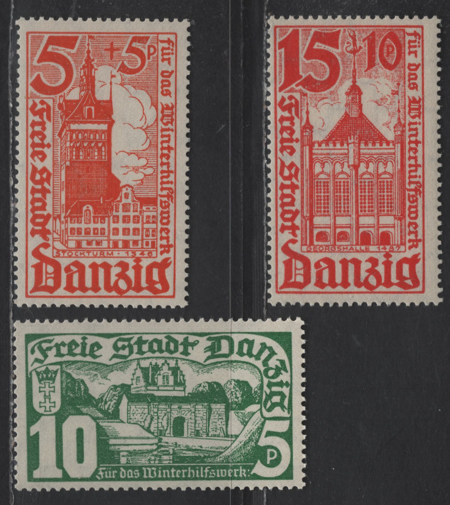 Lot 11 (C) Danzig SC#B12-B14 5pf+5pf - 15pf+10pf Orange - Scarlet Scenery, 1935 Semi Postal Issue, 3 F/VFNH Singles