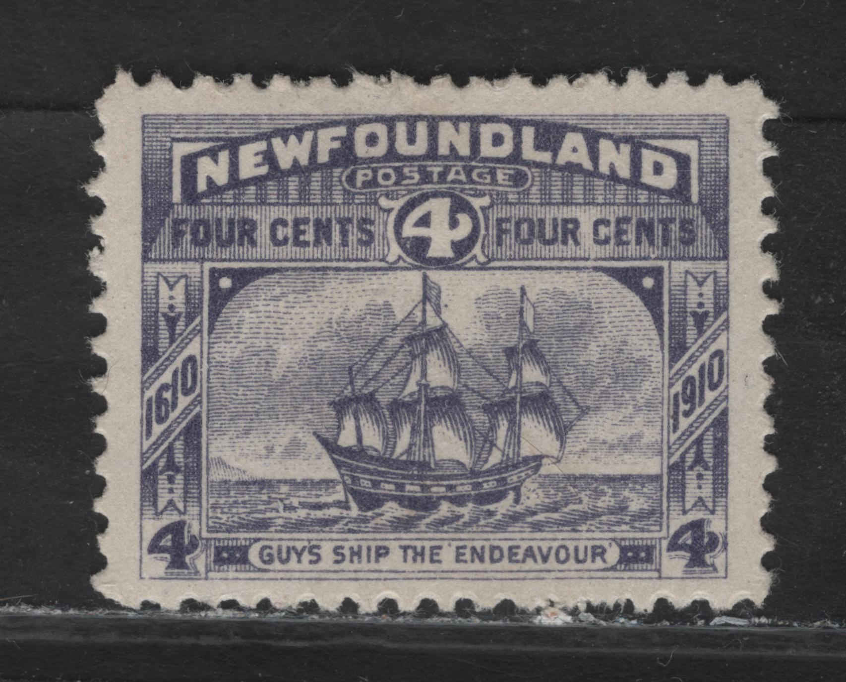 Lot 113 Newfoundland #90 4c Dull Violet, 1910 Guy Issue, A VFOG Single On Paper WM-A, Perf 11.75x12
