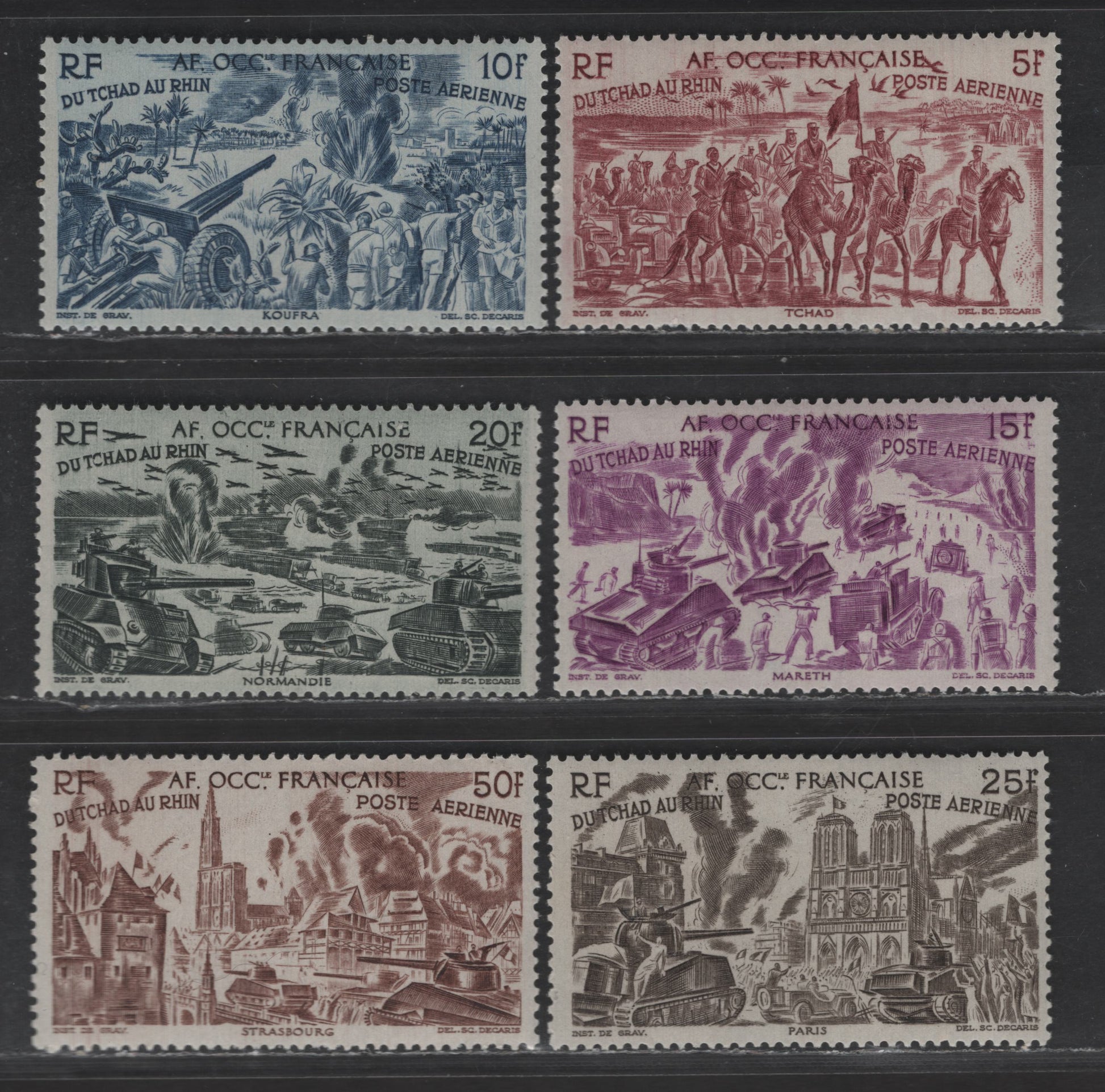 Lot 114 French West Africa SC#C5-C10 5fr - 50fr Brown Carmine - Brown City, 1946 From Chad To Rhine Airmail Issue, 6 VFOG Singles